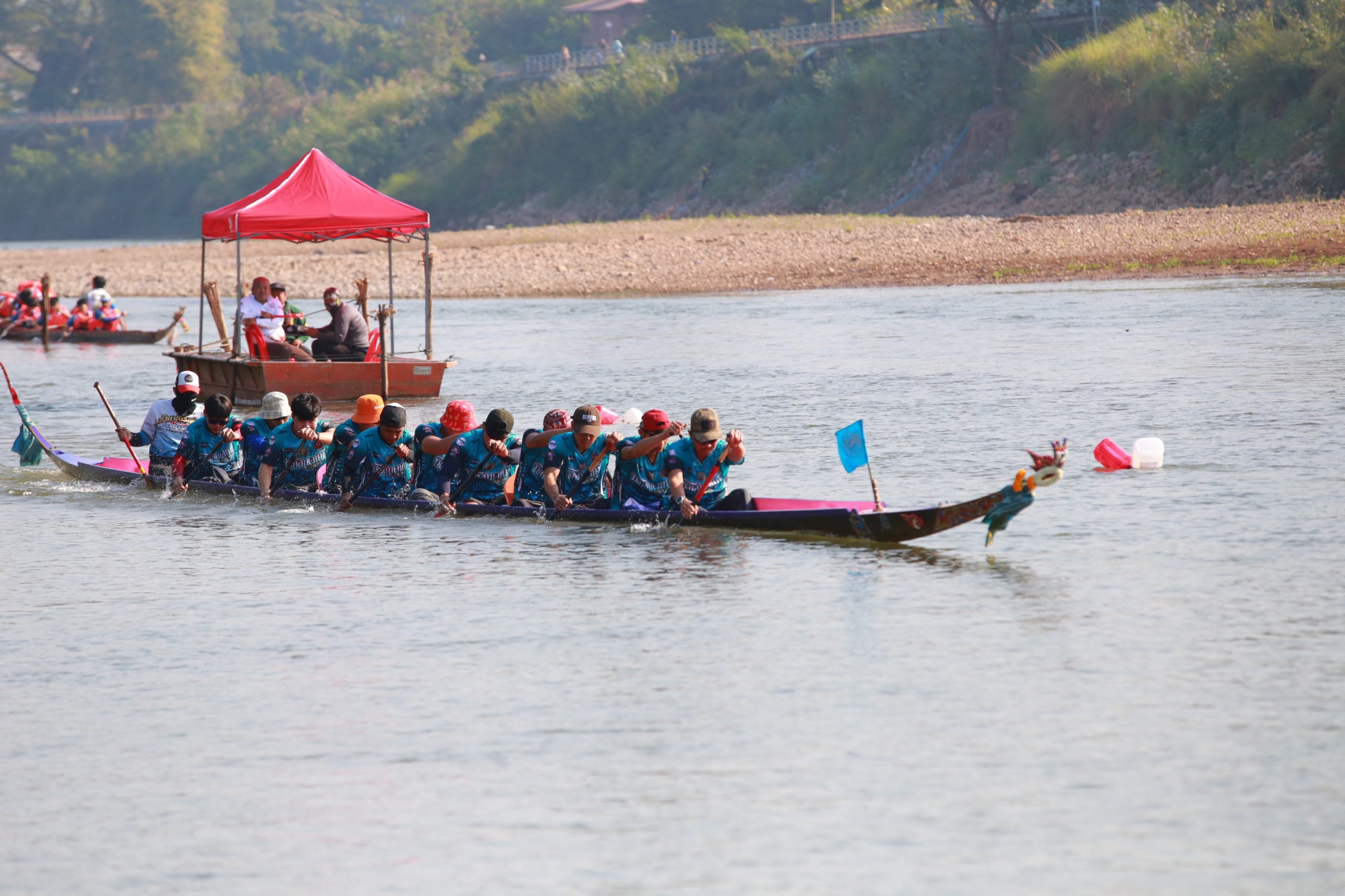 โอกาสเดียวกัน นายสุรพล เธียรสูตร นายกเทศมนตรีเมืองน่าน ได้ร่วมพบปะให้กำลังใจฝีพายและเยาวชนที่เข้าร่วมการแข่งขัน พร้อมร่วมรับชมการแข่งขันเรือ 12 ฝีพายคู่พิเศษ ระหว่างทีม “ศรนารายณ์สเก็ตดอนแก้ว” กับทีม “เทพชยากรศิษย์หลวงพี่เอกอาฮาม” ชิงถ้วยรางวัลเกียรติยศและเงินรางวัลจากสมาคมเรือแข่งจังหวัดน่าน