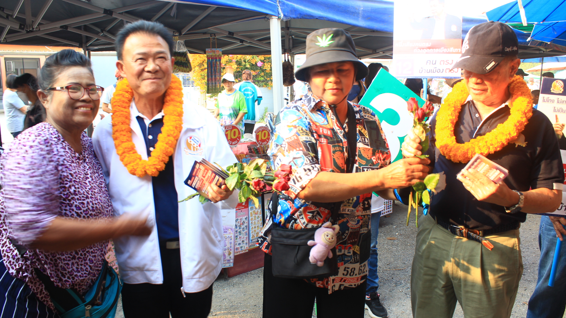 เมื่อวันที่ 31 ม.ค. 2569 เวลา 18.30 น. ที่ผ่านมา ผู้สื่อข่าวรายงานว่า พลตำรวจตรีเกษม สังข์พันธุ์ รองหัวหน้าพรรคเสรีรวมไทย ได้รับมอบหมายจาก พลตำรวจเอกเสรีพิศุทธ์ เตมียเวช หัวหน้าพรรคเสรีรวมไทย ให้ลงมาช่วย นายธนกร ทองใบ ผู้สมัครหมายเลข 3 พรรคเสรีรวมไทย โดยได้ลงพื้นที่ตลาดเย็น บริเวณจุดแรกตลาดนัดปากแพรก ได้พบกับเจ้บ้าบิ่นแม่ค้าสลากคนดังหวย 30 ล้าน ได้นำพวงมาลัยดอกดาวเรืองมามอบเป็นกำลังใจให้กับ รองหัวหน้าพรรค และนายธนกร ทองใบ ผู้สมัครพรรคเสรีรวมไทย โอกาสนี้เจ้บ้าบิ่น ได้บอกกับผู้สมัครว่าขอให้ประสบผลสำเร็จในการเลือกตั้งครั้งนี้…..ส่วนจุดที่สอง ได้ไปเดินในตลาดชุกโดน ตำบลบ้านใต้ โดยเดินแจกแผ่นพับนโยบายของพรรคเสรีรวมไทยให้กับประชาชน