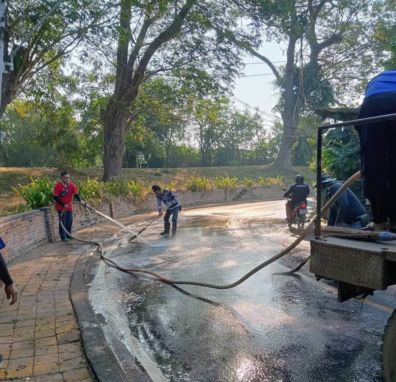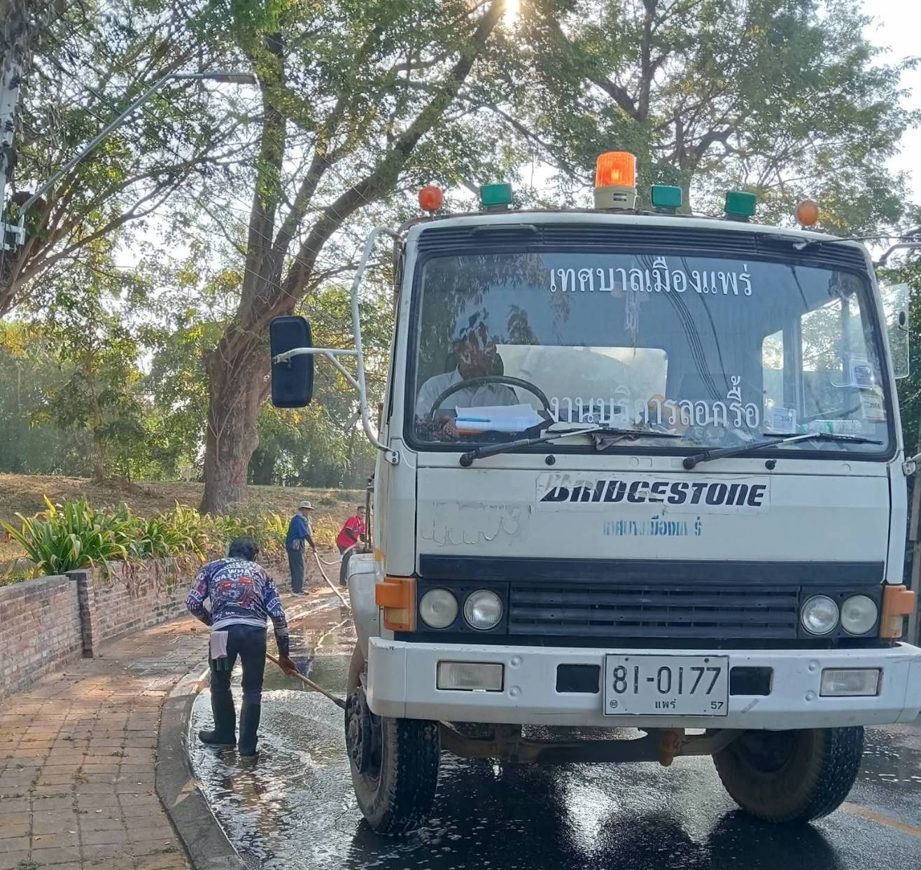 นายสุริยา อินต๊ะนอน นายกเทศมนตรีเมืองแพร่ ได้รับทราบความเดือดร้อนของพี่น้องประชาชน และสั่งให้เจ้าหน้าที่เทศบาลได้นำรถบรรทุกน้ำและกำลังเจ้าหน้าที่เข้าฉีดล้างทำความสะอาดผิวถนนอย่างเร่งด่วน เพื่อขจัดคราบสกปรก ลดความลื่น และป้องกันอุบัติเหตุซ้ำซ้อน พร้อมคืนความปลอดภัยให้กับประชาชนและผู้สัญจรในพื้นที่เป็นที่เรียบร้อย