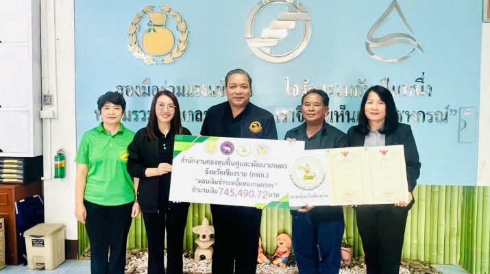 วันที่ 3 กุมภาพันธ์ 2569 เวลา 09.30 น.นายนิยม สุวรรณประภา หัวหน้าสำนักงานกองทุนฟื้นฟูและพัฒนาเกษตรกร สาขาจังหวัดเชียงราย (กฟก.) ได้มอบเงิน จำนวน 745,490.72 บาท เพื่อชำระหนี้แทนเกษตรกร ลูกหนี้สหกรณ์ฯ อำเภอเชียงเเสน จำนวน 1 ราย โดยมีนางเเสงสุนีย์ นุชัย ผู้จัดการสหกรณ์ฯ นายสุภาพ จินดา รองประธานกรรมการ และนางสาวชนิต พรมเมือง ผู้จัดการสำนักงาน เป็นผู้รับมอบ เเละมี นางสาวธัญญรัตน์ โพธิตา ผู้อำนวยการกลุ่มส่งเสริมสหกรณ์ 2 สำนักงานสหกรณ์จังหวัดเชียงราย เป็นสักขีพยาน ณ สหกรณ์การเกษตรเชียงแสน จำกัด