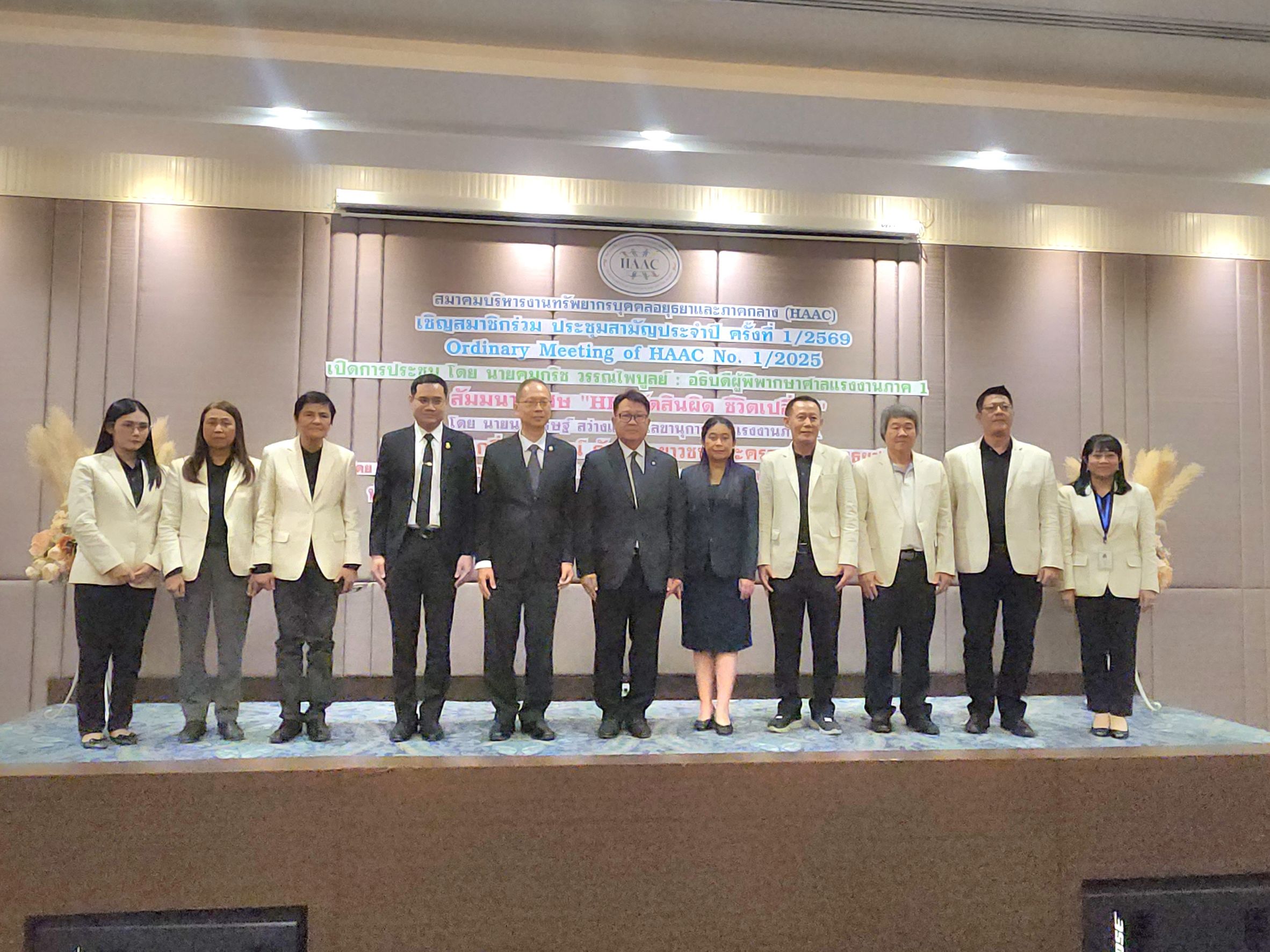 วันที่ 4 กุมภาพันธ์เวลา 13.30 น. ณ ห้องดาหลา โรงแรมกรุงศรีริเวอร์ จังหวัดพระนครศรีอยุธยา นายคมกริช วรรณไพบูลย์ อธิบดีศาลแรงงานภาค 1 เป็นประธานในพิธีเปิดการประชุมใหญ่สามัญประจำปี 2568 พร้อม บรรยายพิเศษในหัวข้อ “HR ตัดสินผิด ชีวิตเปลี่ยน” โดยมีนายพูนสุข สุวรรณดี นายกสมาคมบริหารงานทรัพยากรบุคคลอยุธยาและภาคกลาง กล่าวรายงาน