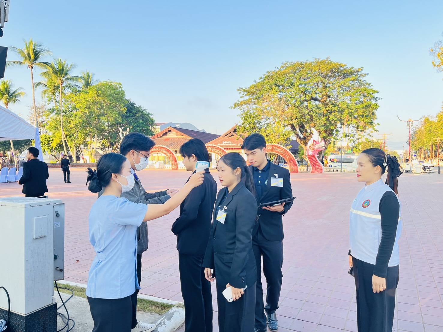 เทศบาลเมืองน่าน ปฏิบัติภารกิจคัดกรองด้านสาธารณสุข รองรับการเสด็จพระราชดำเนิน ณ วัดภูมินทร์ จังหวัดน่าน