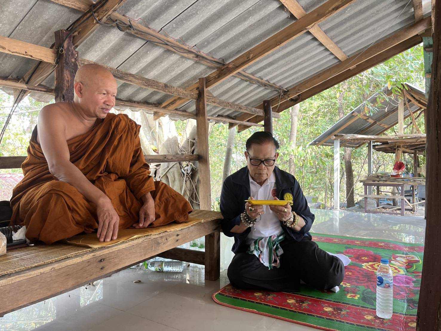 หลังจากที่ได้กราบนมัสการแล้ว ก็เป็นการสนทนาธรรมส่วนใหญ่พระอาจารย์ได้พร่ำสอนในเรื่องความรู้คุณ การทำสมาธิ การระลึกถึงพระพุทธเจ้า หมั่นใส่บาตรหยาดน้ำ ที่ทำอยู่ก็ดีอยู่แล้ว จากนั้นพระอาจารย์ก็ทำน้ำพระพุทธมนต์เพื่อปะพรมให้กับมหานิยมและคณะ พร้อมทั้งผูกข้อมือด้วยสายสิญจ์ และมอบวัตถุมงคลเป็นเหรียญสตางค์รูเพื่อป้องกันภูตผีและสิ่งอัปมงคลให้ทุกคน ก่อนเดินทางกลับ ดร.นิยม ได้แต่งขันธ์ห้าเพื่อให้พระอาจารย์ดูดวง เมื่อไล่เลขแล้ว ตกที่เลข 75 ซึ่งในทางโหราศาสตร์เรียกว่าตกฉัตรเงินฉัตรทอง ซึ่งหมายถึง การได้รับเกียรติยศ ชื่อเสียง และความมั่งคั่งร่ำรวย มีโอกาสดีๆ เข้ามาในชีวิต จากนั้นก็กราบลาพระอาจารย์ซึ่งท่านได้ให้คำอำนวยอวยพรเพื่อเป็นกำลังใจ