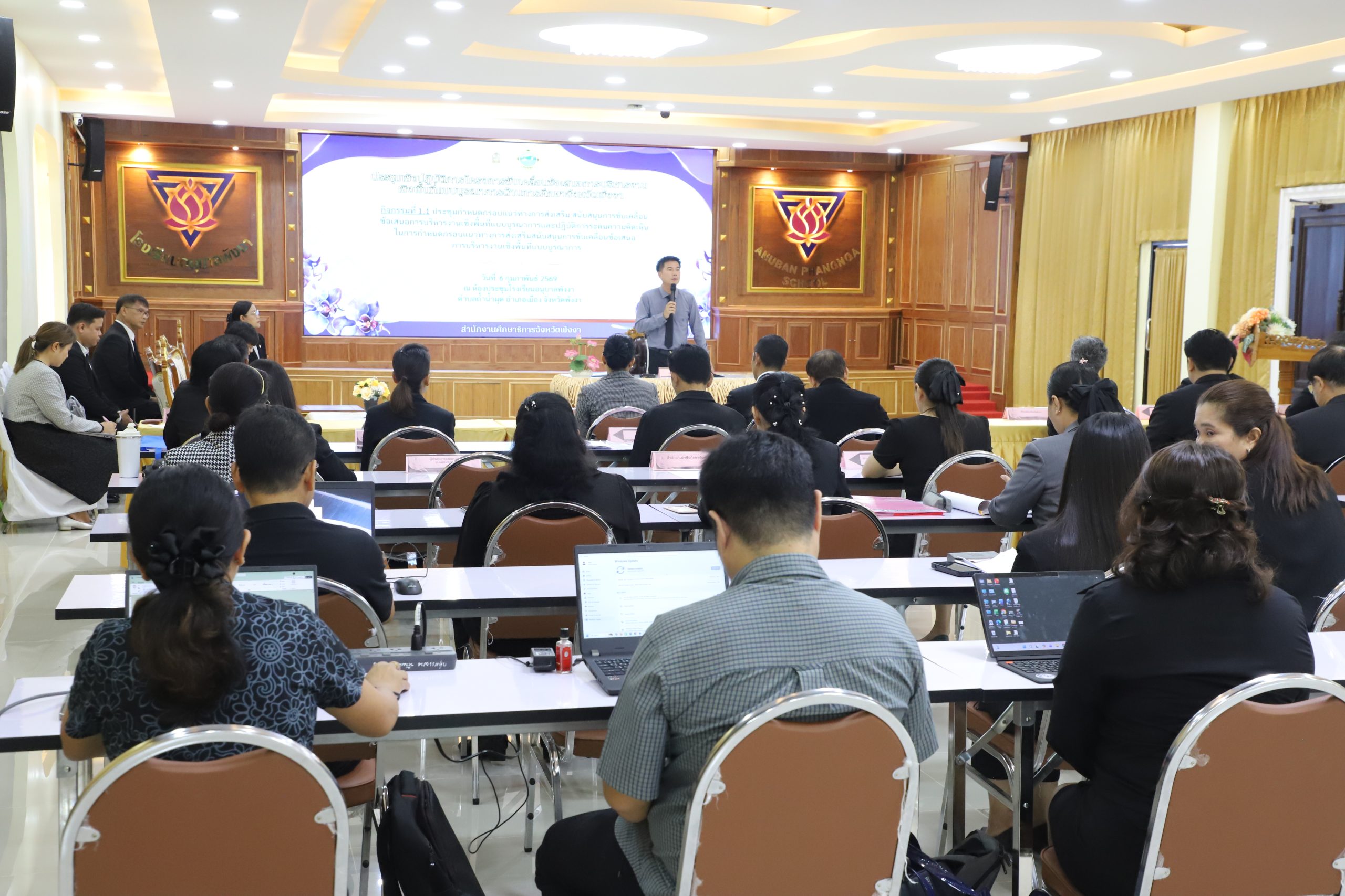 วันที่ 6 กุมภาพันธ์ 2569 สำนักงานศึกษาธิการจังหวัดพังงา จัดประชุมเชิงปฏิบัติการโครงการขับเคลื่อนข้อเสนอการบริหารงานเชิงพื้นที่แบบบูรณาการด้านการศึกษา จังหวัดพังงา ณ ห้องประชุมโรงเรียนอนุบาลพังงา อำเภอเมือง จังหวัดพังงา โดยได้รับเกียรติจากนายไพรัตน์ เพชรยวน ผู้ว่าราชการจังหวัดพังงา เป็นประธานในพิธีเปิดการประชุม