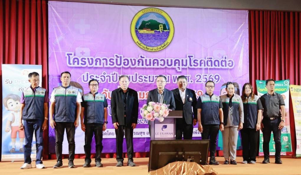 นายบำรุง ปิยนามวาณิช นายก อบจ.พังงา ประธานเปิดโครงการป้องกันควบคุมโรคติดต่อ ประจำปีงบประมาณ พ.ศ. 2569 นางสมใจ เป้าทอง ผู้อำนวยการกองสาธารณสุข กล่าวรายงาน มีคณะผู้บริหาร สมาชิกสภา อบจ.พังงา หัวหน้าส่วนราชการ ข้าราชการ ผู้เข้าร่วมอบรม ประกอบด้วยเด็ก เยาวชน และประชาชน ปัจจุบันโรคติดต่อยังคงเป็นปัญหาสำคัญที่ส่งผลกระทบต่อสุขภาพของประชาชน โดยเฉพาะกลุ่มเด็กและเยาวชนซึ่งมีความเสี่ยงต่อการติดเชื้อได้ง่าย จากการอยู่รวมกันเป็นจำนวนมาก และพฤติกรรมที่เอื้อต่อการแพร่กระจายของโรค