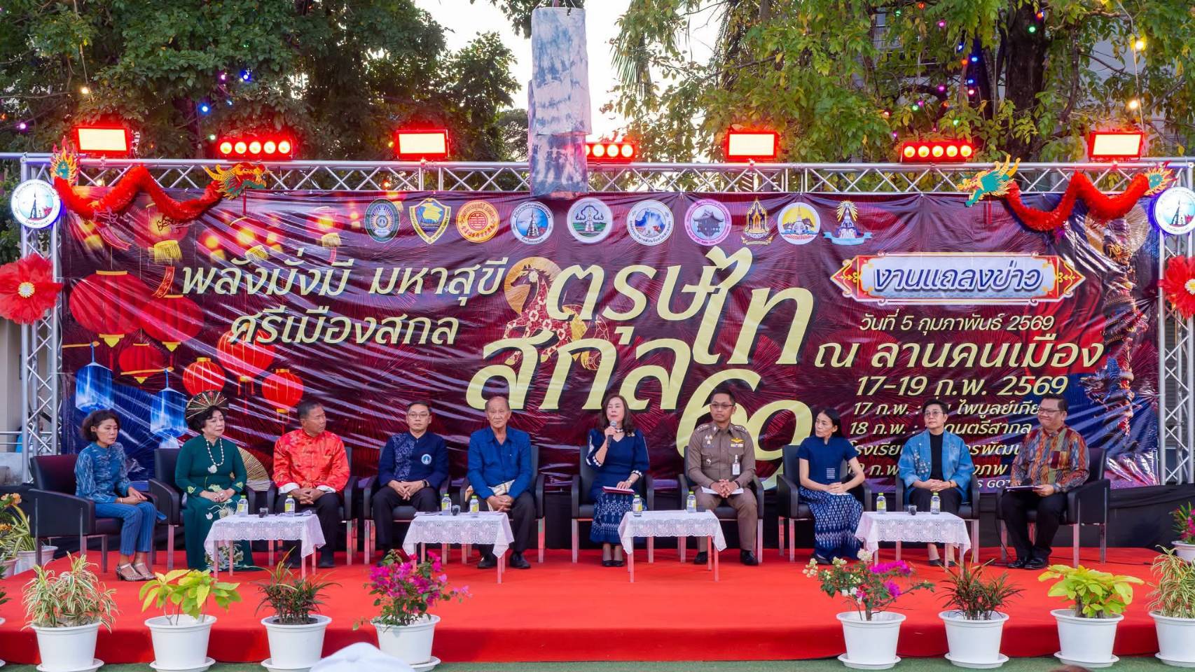 ที่บริเวณลานคนเมือง อ.เมือง จ.สกลนคร เทศบาลนครสกลนคร นางรณิดา เหลืองฐิติสกุล ผวจ.สกลนคร เป็นประธานการแถลงข่าวการจัดงาน”ตรุษไทสกล” จังหวัดสกลนคร ประจำปี 2569 ภายใต้ธีมการจัดงาน “พลังมั่งมี มหาสุขี ศรีเมืองสกลนคร โดยร่วมกับ อบจ.สกลนคร ทน.สกลนครการท่องเที่ยวแห่งประเทศไทย สำนักงานนครพนม สมาคมชาวไทยเชื้อสายจีน เชื้อสายเวียดนาม ภาครัฐภาคเอกชน และตำรวจร่วมกันแถลงข่าว