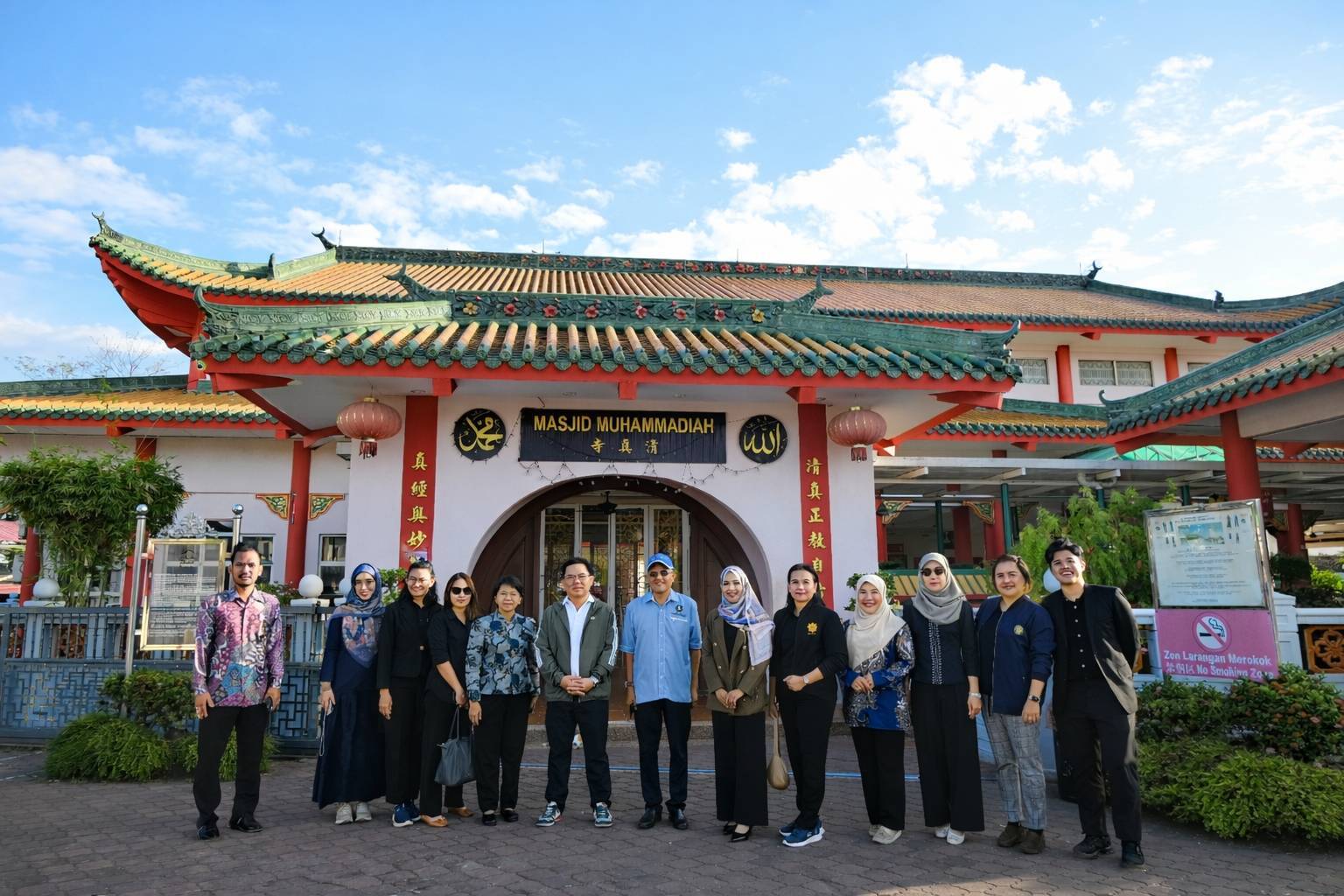 วันนี้ (11 กุมภาพันธ์ 2569) เวลา 08.00 น. ตามเวลาประเทศไทย นายปิยะศิริ วัฒนวรางกูร เลขาธิการศูนย์อำนวยการบริหารจังหวัดชายแดนภาคใต้ (ศอ.บต.) พร้อมคณะฯ เดินทางออกจากที่พัก เพื่อนำคณะเข้าเยี่ยมชม Masjid Muhammadiah หรือ Masjid Cina Ipoh ณ เมืองอีโปห์ รัฐเปรัก ประเทศมาเลเซีย ซึ่งเป็นมัสยิดที่มีเอกลักษณ์โดดเด่นด้านสถาปัตยกรรมจีนดั้งเดิม 100% ผสมผสานศิลปะจีนและอิสลามอย่างลงตัว จนผู้ที่พบเห็นอาจเข้าใจว่าเป็นวัดหรือพระราชวังจีน หากมิได้สังเกตป้ายชื่อ ถือเป็นสัญลักษณ์แห่งความหลากหลายทางวัฒนธรรมและความกลมกลืนทางศาสนาในสังคมพหุวัฒนธรรมของมาเลเซีย