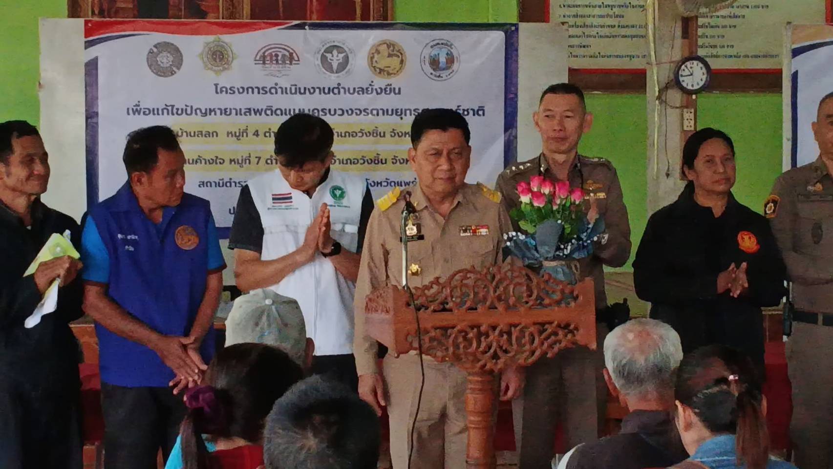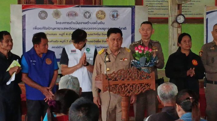 ทั้งนี้ เพื่อเป็นการแก้ไขปัญหายาเสพติด แบบครบวงจรตามยุทธศาสตร์ชาติ ของ บ้านสลก หมู่ 4 และบ้านค้างใจ หมู่ 7 ต.แม่เกิ๋ง อ.วังชิ้น จ.แพร่ โดยมีประชาชนบ้านค้างใจ เข้าร่วมโครงการประมาณ 100 คน