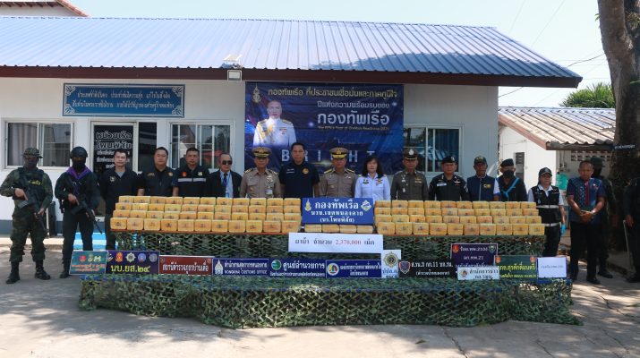 วันที่ 12 ก.พ.69 ที่ หน่วยเรือโพนพิสัย นรข.เขตหนองคาย นายไพฑูรย์ มหาชื่นใจ รอง ผวจ.หนองคาย,พล.ร.ต.ณรงค์ เอมดี ผบ.นรข.,พล.ต.ต.อัทธชนม์ ช่วงงาม ผบก.ภ.จว.หนองคาย, พ.อ.อุดมการณ์ ศรีแขไตร รอง ผบ.ควบคุมที่ 2 กกล.สุรศักดิ์มนตรี,น.อ.วิศิษฐ์พงศ์ เจริญวิชยเดช ผบ.นรข.เขตหนองคาย,พ.ต.อ.นวกฤต นาวการพาณิชย์ ผกก.สภ.บ้านเดื่อ,พ.ต.ท.ปฐวี ชำนาญดี รอง ผกก.ตชด.24,พ.ต.วิทยา สิงห์อร ผบ.ร้อย ฉก.ทพ.2104,นายชัยสิทธิ์ คำภาจันทร์ หน.ศูนย์อำนวยการ ปปส.หนองคาย,น.ส.วรรณา ผู้อุตส่าห์ นายด่านศุลกากรหนองคาย,ร.อ.ภาสพล สีทองเกตุ หน.เรือโพนพิสัย นรข.เจตหนองคาย พร้อมด้วยหน่วยงานความมั่นคงในพื้นที่ แถลงข่าวการตรวจยึดยาเสพติดประเภท 1(ยาบ้า) จำนวนประมาณ 2,370,000 เม็ด ที่ลักลอบนำเข้าจากประเทศเพื่อนบ้าน
