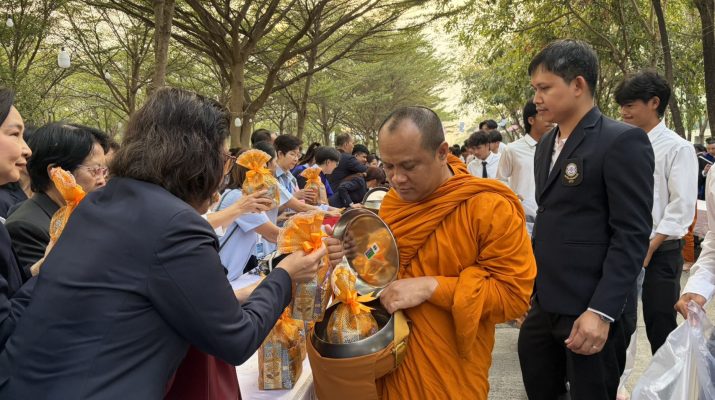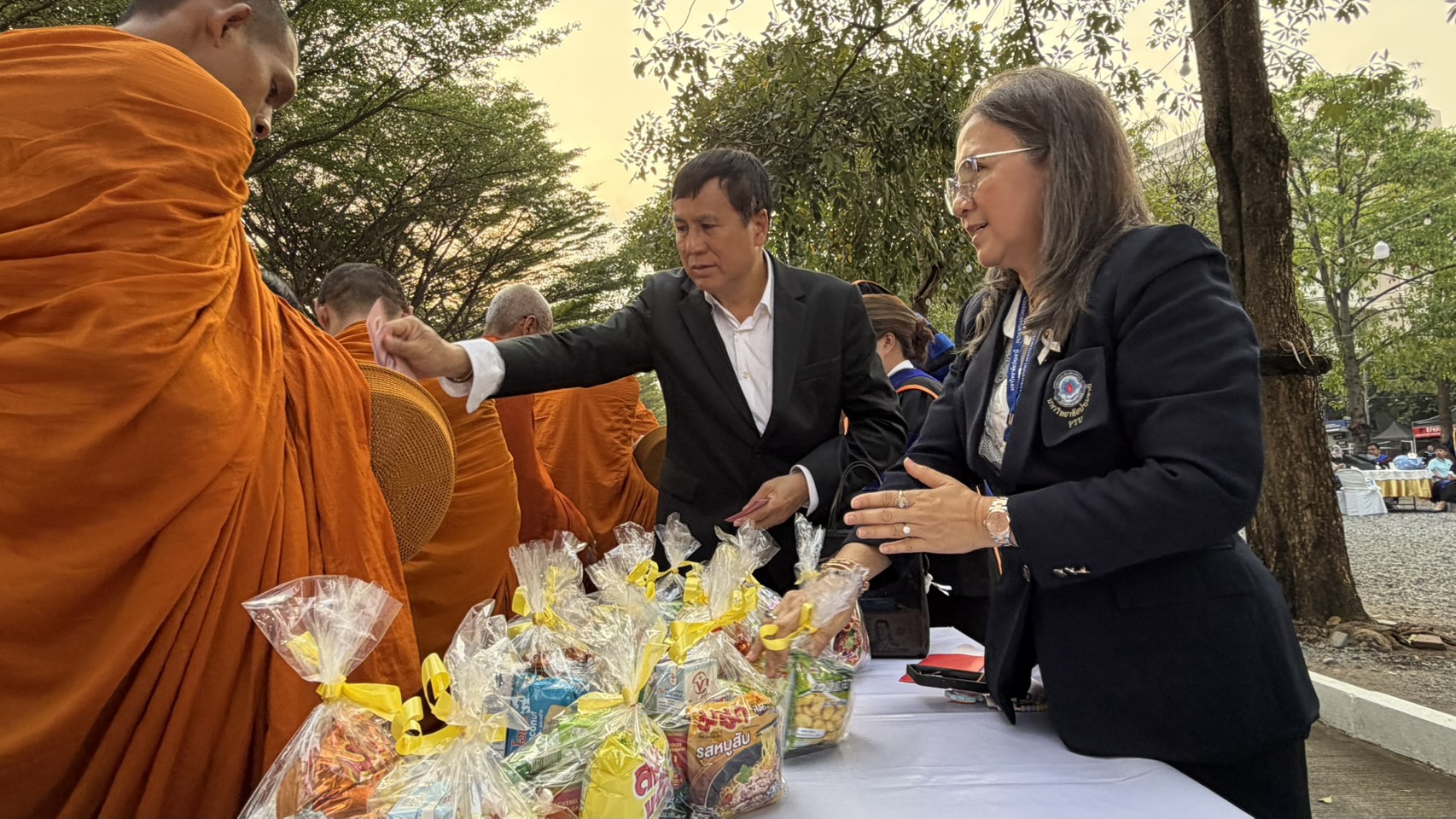 เมื่อช่วงเช้าวันที่ 14 กุมภาพันธ์ 69 ผู้สื่อข่าวรายงานว่าที่บริเวณลานหน้าอาคาร 1 มหาวิทยาลัยปทุมธานี จ.ปทุมธานี ดร.ชนากานต์ ยืนยงอธิการบดีมหาวิทยาลัยปทุมธานี พร้อมด้วย รศ.ดร.จิราภรณ์ ขันทอง รองอธิการบดี นายสมบูรณ์ ปานย้อย นายกเทศมนตรีตําบลบ้านใหม่ คณะครูอาจารย์ และนักศึกษามหาวิทยาลัยปทุมธานี ร่วมโครงการตักบาตรข้าวสารอาหารแก่พระสงฆ์เนื่องในวันรับปริญญาบัตรประจำปี 2569 โดยได้รับความเมตตาจาก พระวัชรญาณมุนี วิ” “ท่านเจ้าคุณเทียนชัย” เจ้าอาวาส วัดเทพสรธรรมาราม รับบาตรข้าวสารอาหารแห้งในครั้งนี้