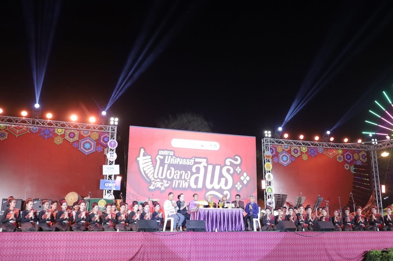 ที่สวนสาธารณะแก่งดอนกลาง เทศบาลเมืองกาฬสินธุ์ รองศาสตราจารย์ ดร.สุพรรณี ฉายะบุตร หัวหน้าโครงการวิจัยมหาวิทยาลัยศิลปากร เรื่อง”การพัฒนาเมืองแห่งทุนวัฒนธรรมที่ยั่งยืน และเครือข่ายย่านวัฒนธรรม ระยะที่ 2” เป็นประธานเปิดงาน “เทศกาลมหัศจรรย์โปงลางกาฬสินธุ์ ครั้งที่ 2 ประจำปี 2569 ภายใต้โครงการวิจัยมหาวิทยาลัยศิลปากร “การพัฒนาเมืองแห่งทุนวัฒนธรรมที่ยั่งยืน และเครือข่ายวัฒนธรรมชุมชน ระยะที่ 2” พร้อมมอบโล่เชิดชูเกียรติแก่ปราชญ์ภูมิปัญญาบ้านโปงลาง แก่พ่อครูบุญเลิศ ภูวิเลิศ พ่อครูสงวน โสมิตร และพ่อครูธงชัย คำโสภา