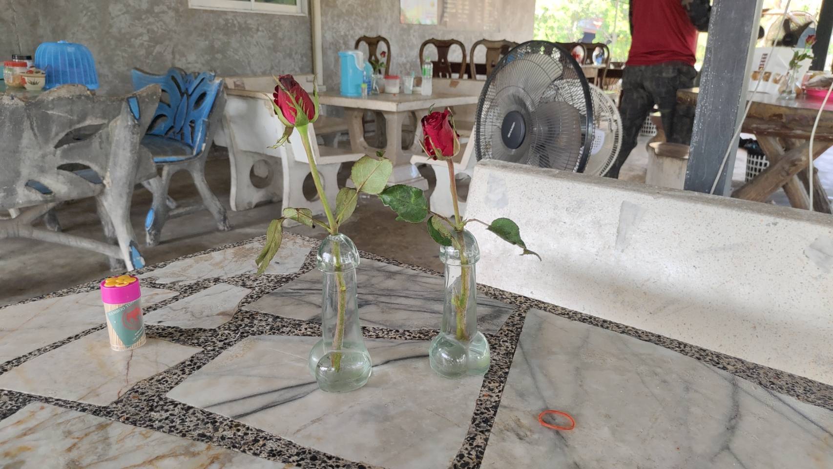 ลูกค้าตื่นตาแจกันดอกไม้ตั้งอยู่บนโต๊ะก๋วยเตี๋ยว แจกันที่ไม่ธรรมดาปักดอกไม้ดอกเดียวก็ทำคนกินยิ้มได้
