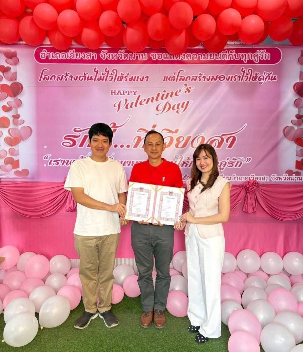 ฃวันเสาร์ที่ 14 กุมภาพันธ์ 2569 ตั้งแต่เวลา 08.00–16.00 น. ที่ อำเภอเวียงสา จังหวัดน่าน ได้จัดกิจกรรม “จดทะเบียนสมรสในวันแห่งความรัก (Valentine’s Day)” เนื่องในโอกาสวันแห่งความรัก 14 กุมภาพันธ์ 2569 เพื่อส่งเสริมคุณค่าของสถาบันครอบครัว และอำนวยความสะดวกแก่ประชาชนผู้ประสงค์จดทะเบียนสมรส