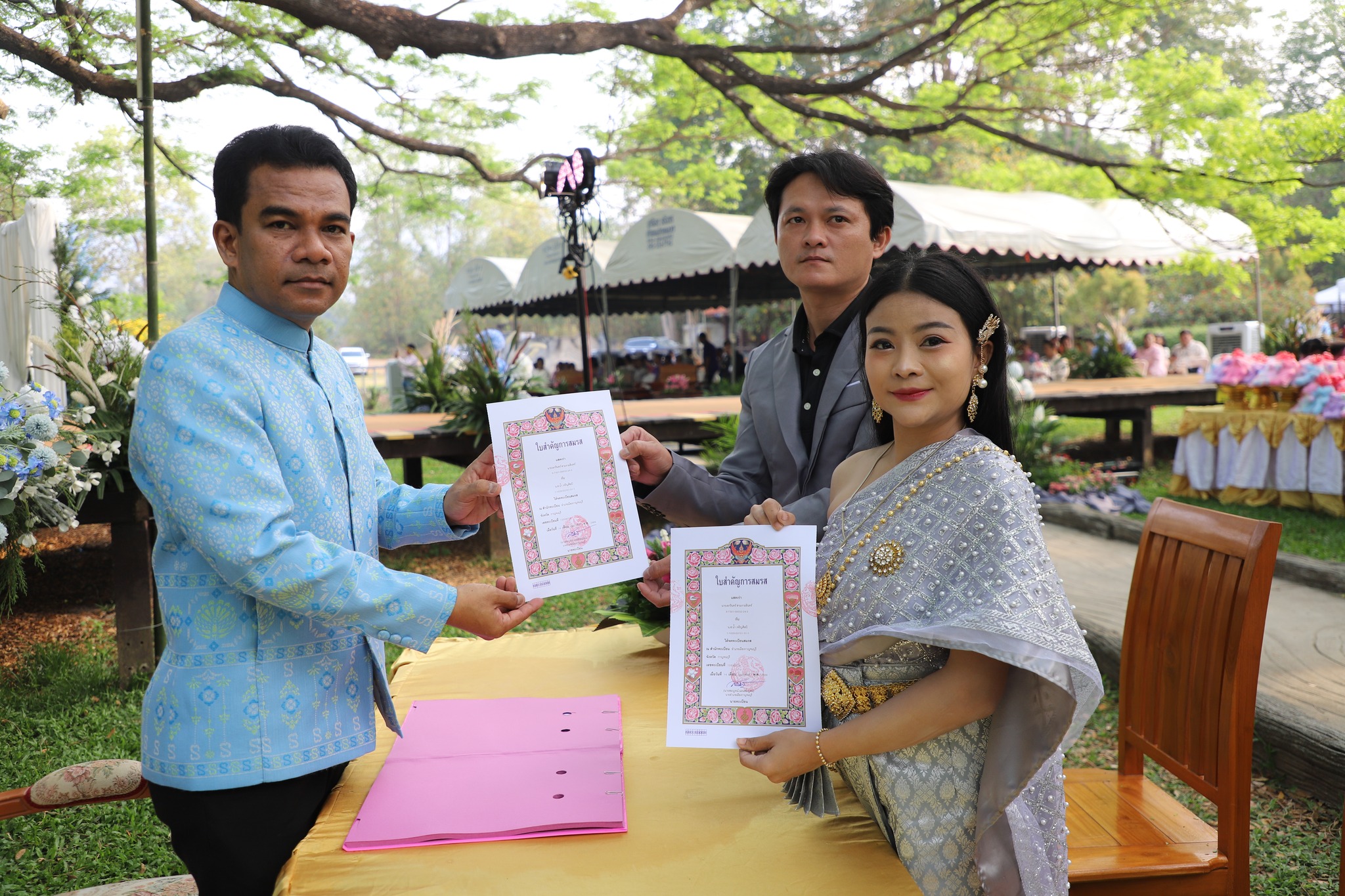 เมื่อวันที่ 14 กุมภาพันธ์ 2569 ที่ผ่านมา ผู้สื่อข่าวรายงานว่า นางพรรณวิภา ปิยัมปุตระ รองผู้ว่าราชการจังหวัดกาญจนบุรี เป็นประธานในการจดทะเบียนสมรสในวันแห่งความรัก 14 กุมภาพันธ์ 2569 ภายใต้งาน “ใต้ร่มพระบารมี ร่มจามจุรีแห่งความรัก” ณ ต้นจามจุรียักษ์ อำเภอเมืองกาญจนบุรี จังหวัดกาญจนบุรี โดยมี นายสมบูรณ์ แผนสมบูรณ์ นายอำเภอเมืองกาญจนบุรี กล่าวรายงาน ฯ หัวหน้าส่วนราชการ กำนัน ผู้ใหญ่บ้าน แขกผู้มีเกียรติ นักท่องเที่ยว และคู่สมรส จำนวน 18 คู่ ร่วมงาน ฯ