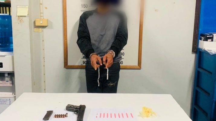 ผลการตรวจค้นในห้องพบพกยาบ้าสีส้มจำนวน 93 เม็ดและสีเขียว จำนวน 2 เม็ด รวมเป็นยาบ้าจำนวน 95 เม็ด,อาวุธปืนพกสั้น ขนาด 11 มม. แบบไทยประดิษฐ์ ไม่ปรากฏหมายเลขทะเบียนที่ใช้ยิงเจ้าหน้าที่จำนวน 1 กระบอก,เครื่องกระสุนปืน ขนาด 11 มม.จำนวน 1 นัดบรรจุอยู่ภายในรังเพลิงของอาวุธปืนดังกล่าว และเครื่องกระสุนปืนขนาด 11 มม. จำนวน 5 นัด บรรจุอยู่ในแม็กกาซีน
