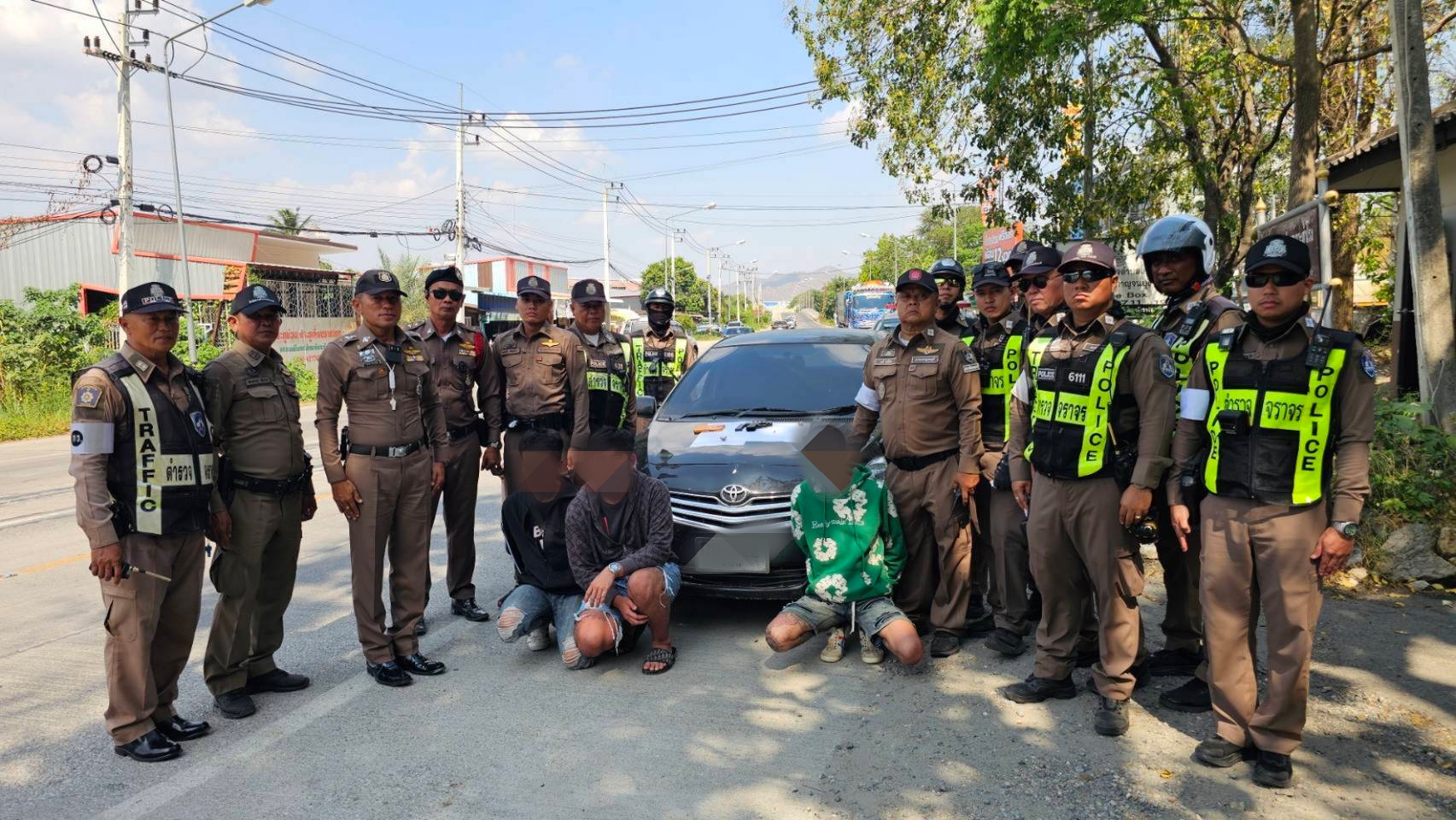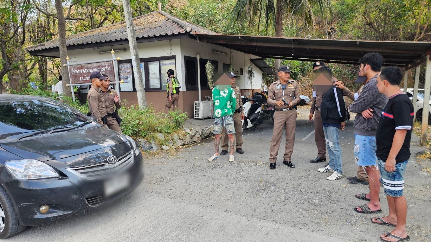 จากนั้นจึงเชิญทั้งหมดลงมาจากรถ ทราบชื่อนายนิติภูมิ (ขอสงวนนามสกุล) คนขับ อายุ 21 ปี ชาว ต.เนินพระ อ.เมือง จ.ระยอง นายพิศาล (ขอสงวนนามสกุล) อายุ 47 ปี ชาว ต.นาทราย อ.เมือง จ.นครศรีธรรมราช นั่งที่เบาะหน้าซ้ายชายอีก 1 รายที่นั่งที่เบาะหลังคือนายริว (ขอสงวนนามสกุล) อายุ 25 ปี ชาว ต.ดอนชะเอม อ.ท่ามะกา จ.กาญจนบุรี และอีก 1 คนคือนายนิวัฒน์ (สงวนนามสกุล)อายุ 34 ปี เป็นชาวตำบลหนองตากยา อ.ท่าม่วง จ.กาญจนบุรี