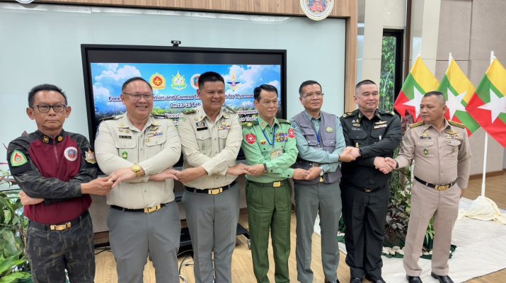 โดยมีนายเชษฐ์ สิทธิสินธุ์ รักษาราชการแทนผู้อำนวยการสำนักทรัพยากรธรรมชาติและสิ่งแวดล้อมจังหวัดกาญจนบุรี กล่าวต้อนรับ นายมานะ เพิ่มพูล ผู้อำนวยการส่วน ควบคุมไฟป่า กล่าวรายงาน มีพล.ต.ธีรพันธุ์ ไตรพิพัฒน์ ผู้อำนวยการสำนักกิจการชายแดนกับประเทศเพื่อนบ้านกรมกิจการชายแดนทหาร พลจัตวาจ่อ แท็ต เสนาธิการภาคทหารบกสามเหลี่ยม นำเจ้าหน้าที่ผู้ปฏิบัติงานเกี่ยวข้องกับการดับไฟป่า ของสาธารณรัฐแห่งสหภาพเมียนมา จำนวน 30 คน เข้าอบรมและฝึกภาคปฏิบัติ ระหว่างวันที่ 23-27 ก.พ.69 ซึ่งครั้งนี้มีล่ามแปลภาษามาร่วมด้วย