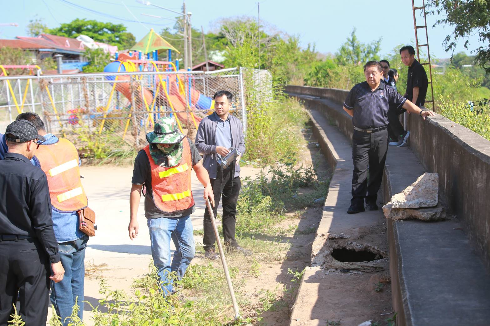 ในการลงพื้นที่ครั้งนี้ มีนายศักดิ์นรินทร์ อินยอด เลขานุการนายกเทศมนตรี นายปกฤษณ์ คำเหลือง ปลัดเทศบาลเมืองน่าน นายนิวัฒน์ สุทธิแสน ผู้อำนวยการกองช่าง และนางพัชรากร คันธเนตร หัวหน้าสำนักปลัดเทศบาล ร่วมตรวจสอบและวางแนวทางแก้ไขปัญหา