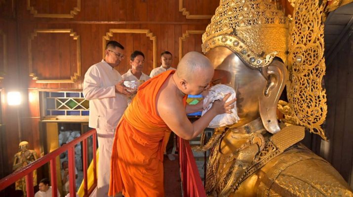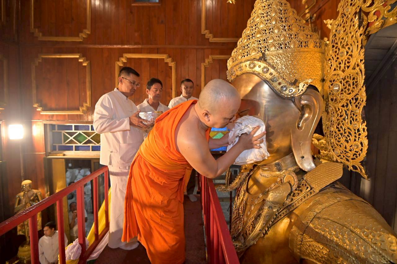 พิธีล้างหน้าพระพักตร์พระเจ้าพาราละแข่ง วัดหัวเวียง ประเพณีตามความเชื่อชาวไทยใหญ่ที่ปฏิบัติสืบต่อมา เชื่อว่าพระพุทธองค์ได้ประทานลมหายใจไว้