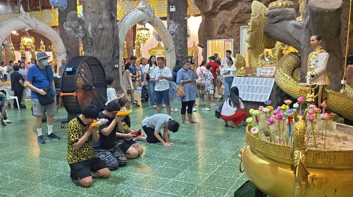 ที่นครนายกผู้สื่อข่าวรายงานว่าบริเวณวัดมณีวงศ์ ต.ดงละคร อ.เมือง จ.นครนายกได้มีนักท่องเที่ยว จากทั่วสารทิศ รวมถึง ศิษย์ยานุศิษย์และ สาธุชนคนทำบุญ แห่เที่ยวชม ถ้ำพญานาค กันเป็นจำนวนมาก ซึ่งวัดมีวงศ์ มีรูปปั้นพญานาคมากกว่า 1,000 ตัว ซึ่งประดิษฐานอยู่ภายใน “วังรัตนมณีมหานครบาดาลนาคราช” หรือถ้ำพญานาคจำลองที่สร้างขึ้นอย่างอลังการ วิจิตรงดงามด้วยพญานาค 4 ตระกูล พร้อมบริวาร ถือเป็นแลนด์มาร์คสำคัญของนครนายกที่ขึ้นชื่อเรื่องความสวยงามและศักดิ์สิทธิ์ ทั้งนี้นักท่องเที่ยวก็พลาดไม่ได้รวมถึงสาธุชนคนทำบุญ ขอเอาฤกษ์เอาชัยในวันพระใหญ่ ต่อคิวยาวเหยียด ให้พระครูปิยรัตนานุกูล (หลวงพี่ต่อ) เจ้าอาวาสวัดมณีวงศ์ ได้ทำการถูกสายสินที่ข้อมือ ที่เชื่อกันว่า ใครที่เดินทางมาที่วัดแห่งนี้แช้ว ได้ผูกสายสินกับหลวงพี่ต่อ ก็จะ ประสบความสำเร็จ และเจริญก้าวหน้าในหน้าที่การงานต่อๆไป