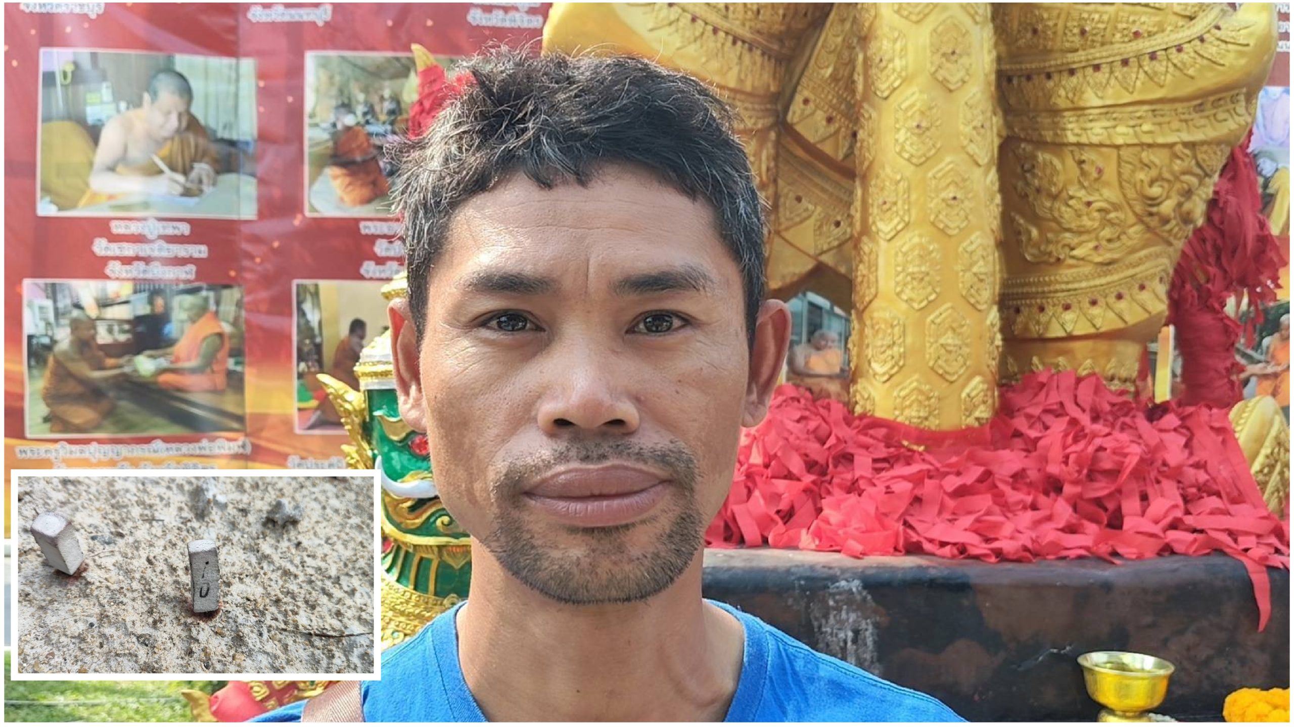 ทางด้านนายชัยชีนะ ชาวไทใหญ่ นำน้ำแดง 1 แพค น้ำดื่ม 1 แพคพร้อมเครื่องเซ่นไหว้เดินทางมาแก้บนท้าวเวสสุวรรณ หลังโชคดีได้รับโชคลาภเป็นครั้งแรก นายชัยชีนะ เล่าว่าตนเป็นแรงงานรับจ้างมำทำงานอยู่ย่านคลองแปด และเป็นครั้งแรกที่ได้รับโชคลาภจากการมาไหว้ขอพรกับท้าวเวสสุวรรณ ซึ่งถือว่าประสบความสำเร็จตั้งแต่ครั้งแรก ในการมาครั้งแรกตั้งใจมาเพื่อทำบุญเป็นหลัก ไม่ได้คาดหวังหรือร้องขอสิ่งใด เมื่อมาแก้บนครั้งนี้ทำให้ตนรู้สึกภูมิใจและสบายใจมากขึ้น ส่วนเงินที่ได้ตนจะเอาไว้ใช้จ่ายในครอบครัวและทำบุญต่อไปเรื่อยๆ และก่อนกลับได้จุดธูปมงคลได้เลข 70 นำกลับไปลุ้นครั้งที่ 2 ต่อไป