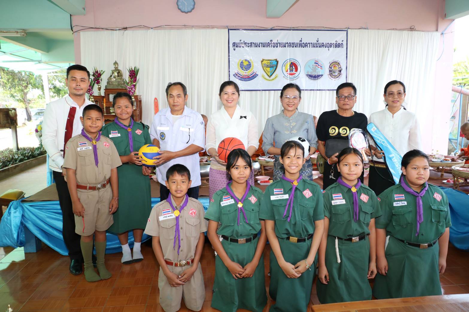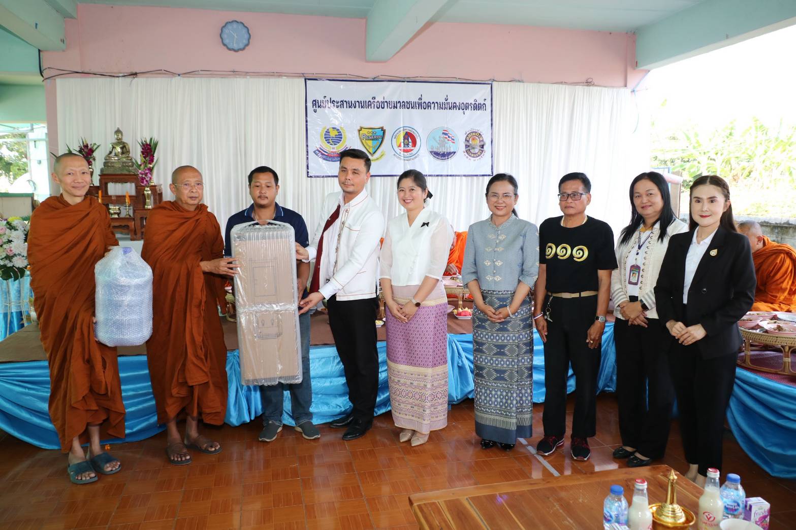 ทางด้านของพระครูวินิตกมลธรรม เจ้าอาวาสวัดศรีพุทธโคดมและพระฉัตรมงคล เกียรติพิทักษ์ชัย ได้มอบเครื่องทำน้ำร้อนน้ำเย็นพร้อมอุปกรณ์จำนวน 1 ชุด นอกจากนี้ทางท่านนายอำเภอตรอนท่านศึกษาจังหวัดและแขกผู้มีเกียรติที่ได้เดินทางมาร่วมงานได้ร่วมกันมอบอุปกรณ์กีฬาอุปกรณ์เครื่องเขียนให้กับเด็กนักเรียนทั้งหมด 64 ชุดนอกจากนี้้บางท่านศึกษาธิการจังหวัดถุงยังชีพจำนวน 20 ถุงมามอบมอบ