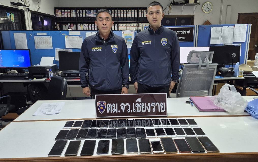 วันที่ 7 มี.ค.2569 พ.ต.อ.สุรศักดิ์ เทียนทอง ผกก.ตม.จว.เชียงราย , พ.ต.ท.หญิงพัสษลพร ศุกระศร รอง ผกก.ตม.จว.เชียงราย และ พ.ต.ท.วิชัย ปันนา สว.ตม.จว.เชียงราย มอบหมายให้เจ้าหน้าที่ควบคุมตัวและดำเนินคดีกับบุคคลสัญชาติจีนจำนวน 11 ราย บุคคลไม่มีสถานทางทะเบียน 2 ราย พร้อมของกลางรถยนต์กระบะยี่ห้อ TOYOTA รุ่น TRAVO ป้ายสีแดง จำนวน 1 คัน โทรศัพท์มือถือจำนวน 45 เครื่องที่เชื่อว่าใช้ในการกระทำความผิดไปทำการตรวจสอบ