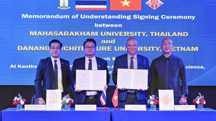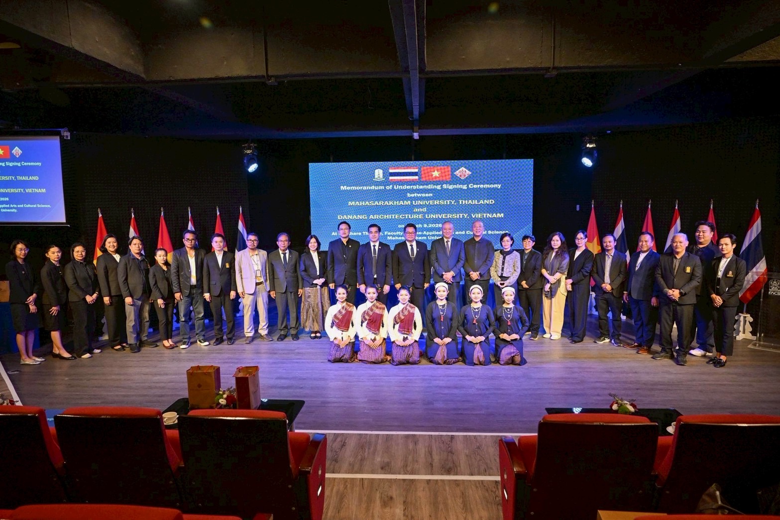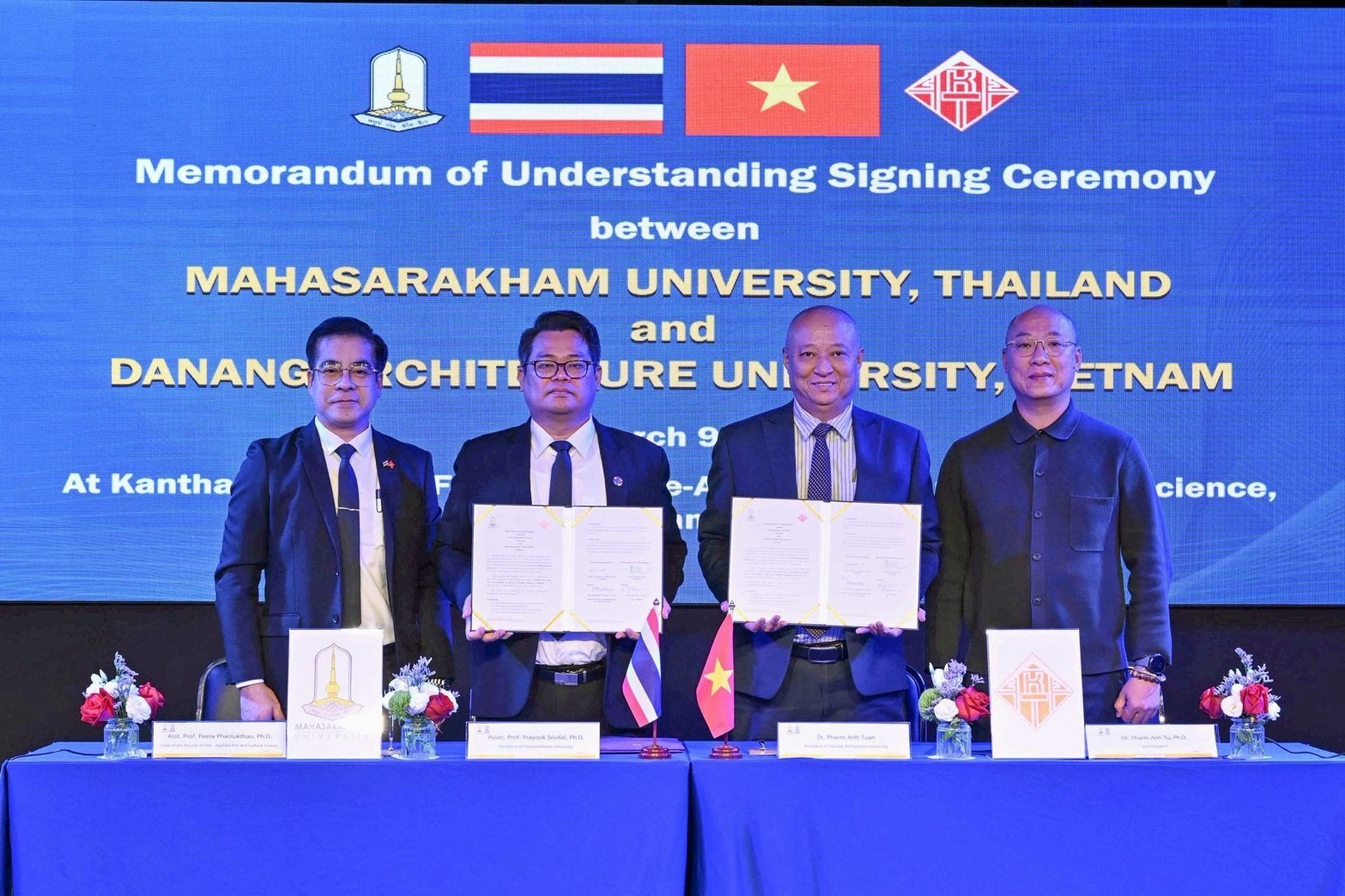 มหาวิทยาลัยมหาสารคาม (มมส) เดินหน้าเสริมสร้างความแข็งแกร่งทางเครือข่ายวิชาการในระดับภูมิภาคอาเซียน โดยคณะศิลปกรรมศาสตร์และวัฒนธรรมศาสตร์ ได้จัดพิธีลงนามต่ออายุบันทึกความเข้าใจความร่วมมือทางวิชาการ (MoU) ระหว่างมหาวิทยาลัยมหาสารคาม และ Danang Architecture University (DAU) สาธารณรัฐสังคมนิยมเวียดนาม ณ โรงละครกันทรา เพื่อแสดงเจตนารมณ์ในการขับเคลื่อนพันธกิจด้านการศึกษาและวิจัยร่วมกันอย่างต่อเนื่อง