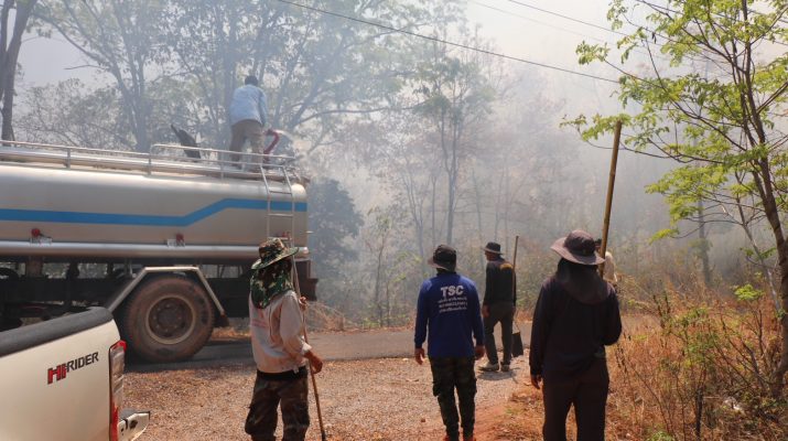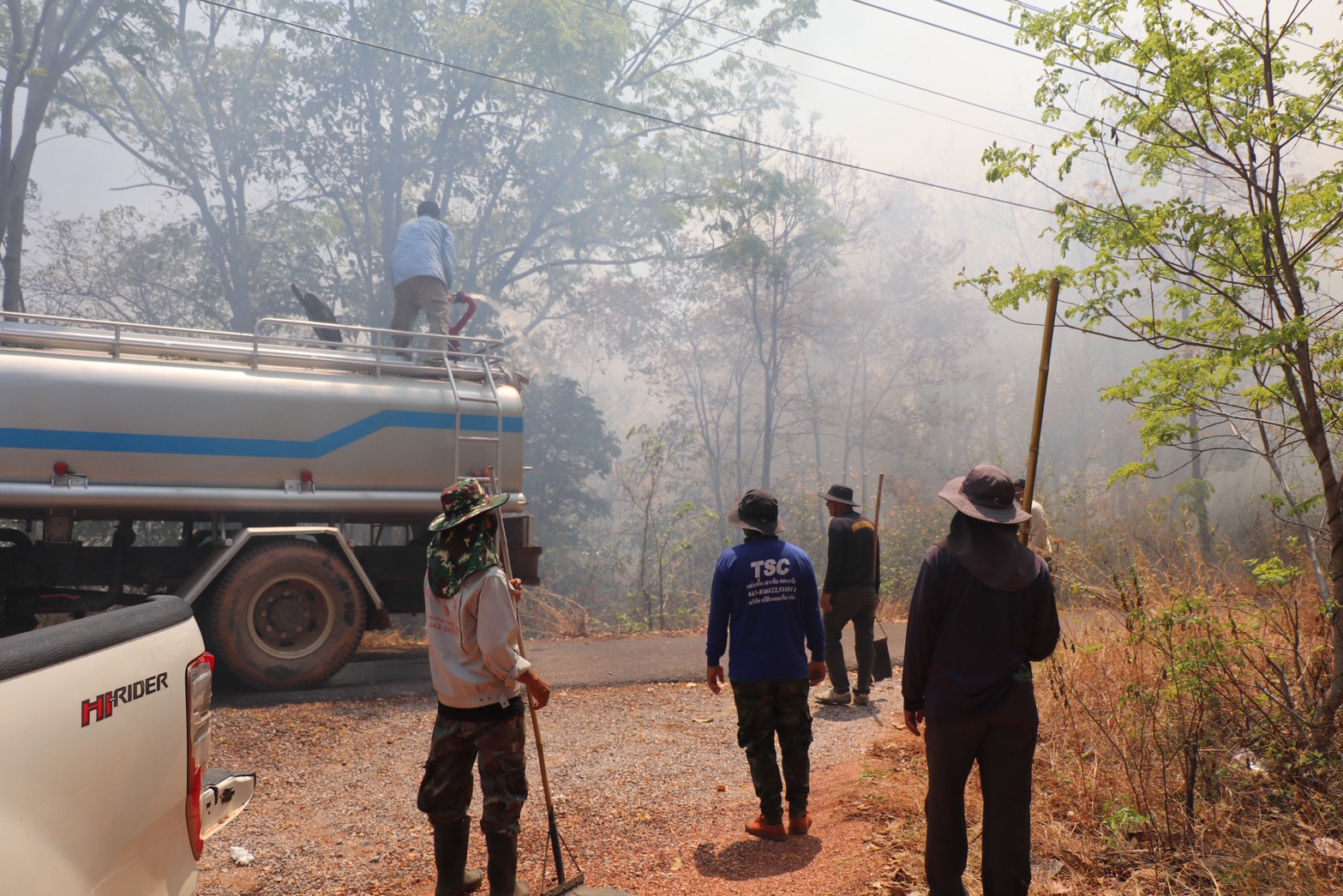 อย่างไรก็ตาม ผู้บริหารท้องถิ่น ได้ตั้งจุดดับไฟป่า ได้แบ่งออกเป็นสองส่วน คือบริเวณด้านล่างตั้งจุดที่วัดกัลยาณบริหาร ตำบลโนนบุรี และด้านบน เป็นวัดพุทธาวาสภูสิงห์ หรือวัดภูสิงห์ ที่ประชาชนต่างพากันระดมดับเพลิงด้วยในระทึก ทั้งนี้ฝุ่นที่เกิดจากไฟที่ลุกไม้ยังทำให้เกิดฝุ่น PM2.5 ฟุ้งกระจายครอบคลุมเกือบทั้งอำเภอแล้ว