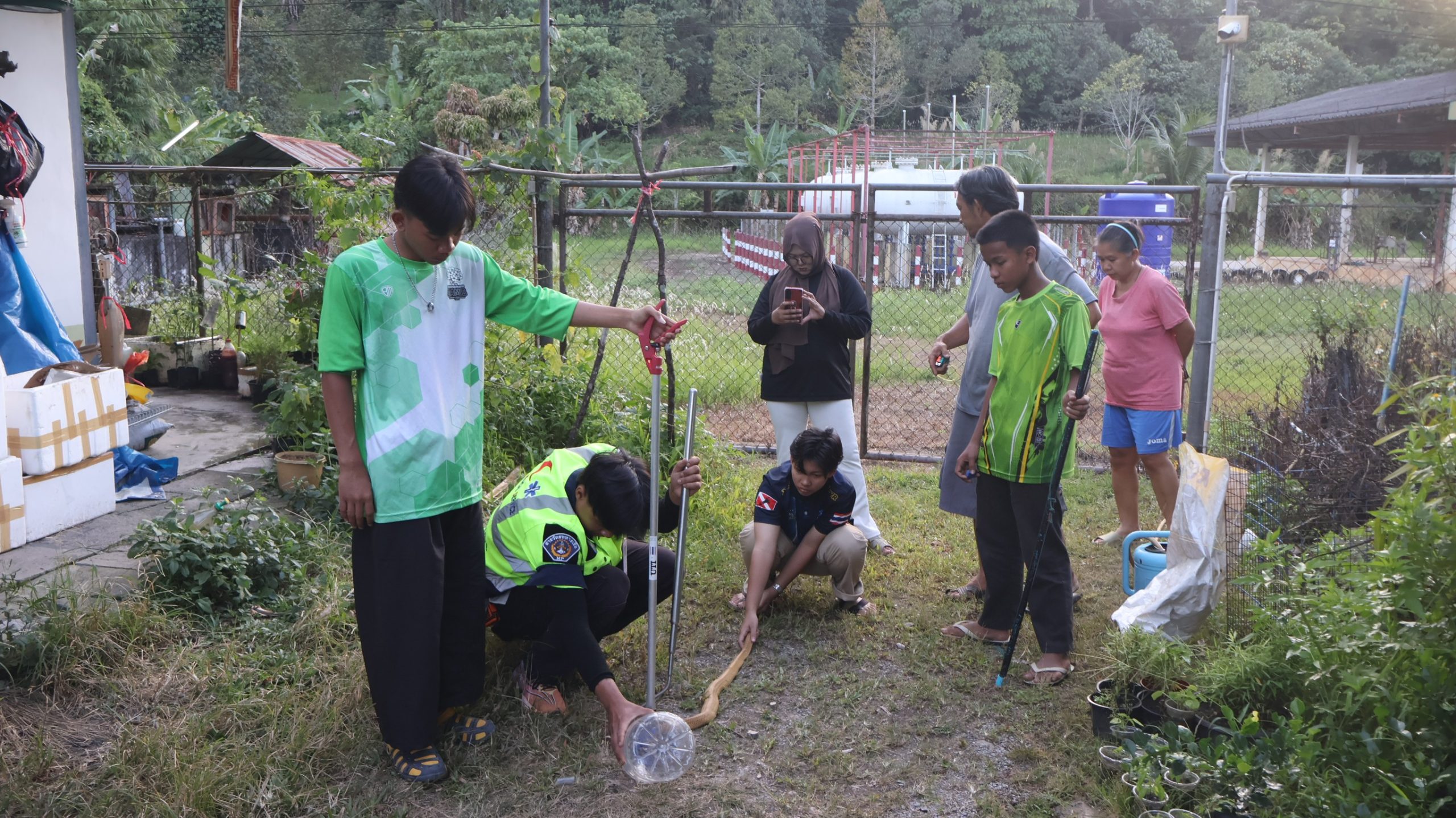 เบตง งูเห่าสีทองพ่นพิษ ติดตาข่ายบ้านพักคนงานโรงแก๊ส เรียกกู้ภัยจับ จ๊ะเอ่ โผล่ออกจากโพรงอีกตัว วางกับดัก จับปล่อยคืนสู่ป่าธรรมชาติ