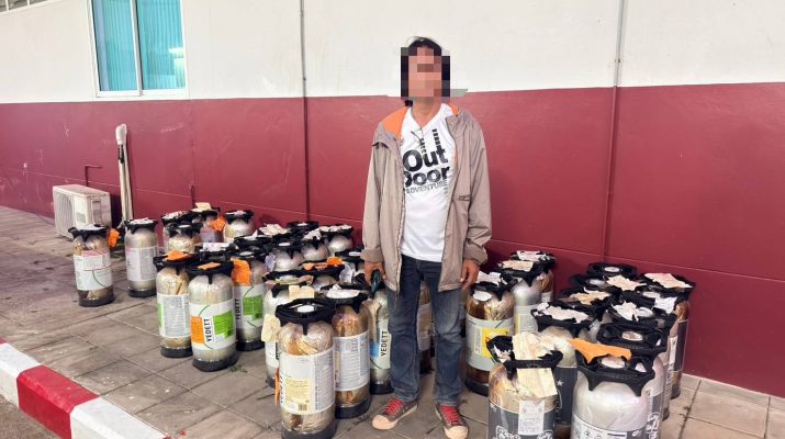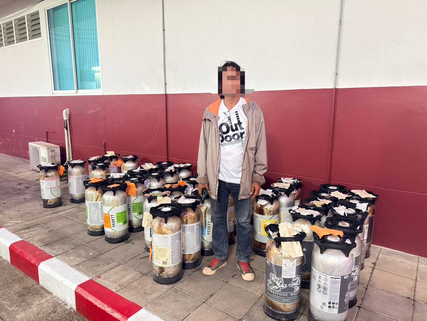 ผู้สื่อข่าวรายงานว่า เมื่อวันที่ 11 มี.ค. 69 ที่ผ่านมา พล.ต.ต.พศวีร์ เรืองภู่ ผบก.ภ.จว.กาญจนบุรี พ.ต.อ.สันทัด ลยางกูร รอง ผบก.ภ.จว.กาญจนบุรี ได้รับรายงานจาก พ.ต.อ.สันติ พิทักษ์สกุล ผกก.สภ.สังขละบุรี ว่า เจ้าหน้าที่ตำรวจสายตรวจรถยนต์ รถจักรยานยนต์ รวมถึงสายตรวจบ้านพระเจดีย์สามองค์ และสายตรวจสามแยกซองกาเรีย ต.หนองลู อ.สังขละบุรี จับกุมตัวนายภูรินทร์ อายุ 58 ปี อยู่ หมู่ 11 ต.หนองบัว อ.หนองบัว จ.นครสวรรค์ พร้อมของกลาง รวม 40 ถัง