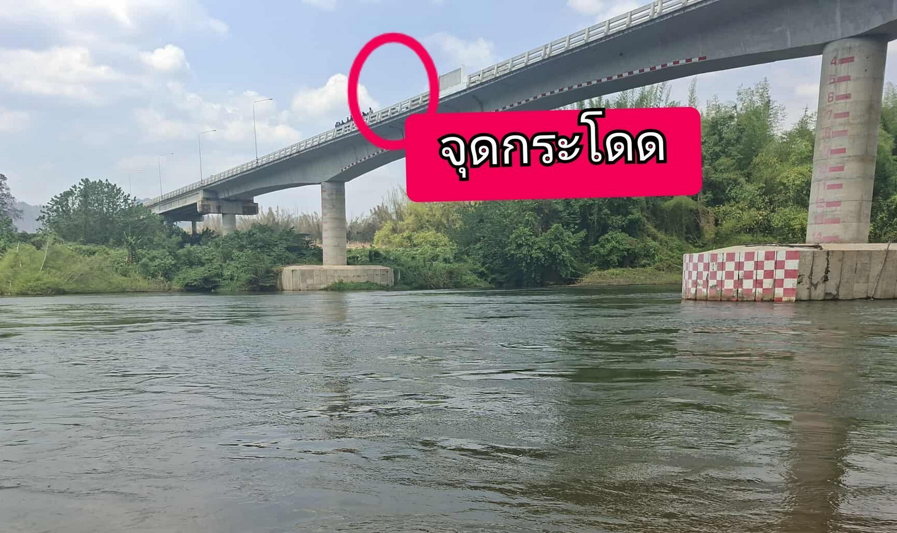 ได้ความว่า ผู้กระโดด เป็นชายอายุประมาณ 27 ปี ลักษณะใส่เสื้อยืดสีขาวไม่ทราบลักษณะกางเกง หลังจากกระโดดน้ำลงไปแล้วได้จมหายไปใต้ท้องน้ำที่มีกระแสไหลเชี่ยว แต่เนื่องจากเป็นช่วงโค้ง จึงทำให้ผู้พบเห็นเหตุการณ์เห็นเพียงแค่ว่าบุคคลดังกล่าวนั้นลอยไปกับกระแสน้ำและหายไป ซึ่งสาเหตุในการตัดสินใจกระโดดสะพานเพื่อฆ่าตัวตายนั้น อยู่ระหว่างการสอบสวนของเจ้าหน้าที่ตำรวจ สภ.ไทรโยค