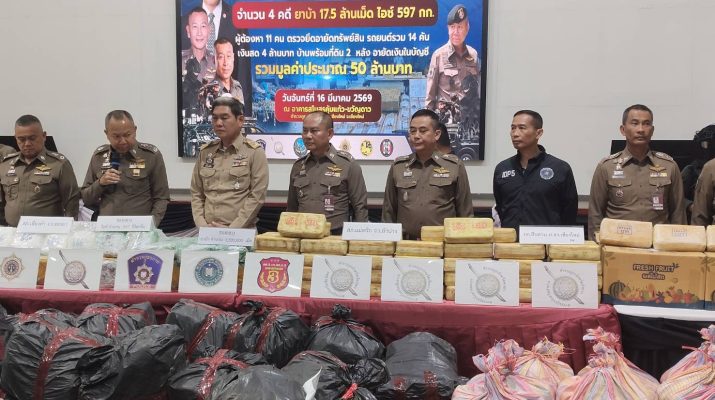 วันที่ 16 มีนาคม 2569 ที่สำนักงานตำรวจภูธรภาค 5 อำเภอเมือง จังหวัดเชียงใหม่ พล.ต.ท.กฤตธาพล ยี่สาคร ผู้บัญชาการตำรวจภูธรภาค 5 พร้อมด้วย นายรัฐพล นราดิศร ผู้ว่าราชการจังหวัดเชียงใหม่ นบ.ยส.35 ฝ่ายปกครอง และสำนักงาน ป.ป.ส. ร่วมกันแถลงผลการจับกุมเครือข่ายยาเสพติดรายสำคัญ จำนวน 4 คดี สามารถจับกุมผู้ต้องหาได้รวม 12 คน พร้อมของกลางยาบ้า 17.5 ล้านเม็ด ไอซ์ 597 กิโลกรัม และอายัดทรัพย์สินรวมมูลค่ากว่า 50 ล้านบาท