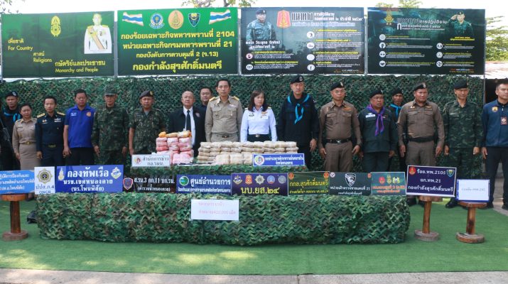 วันที่ 16 มี.ค. 69 ที่ ร้อย.ฉก.ทพ.2104 ฉก.ทพ.21 อ.โพนพิสัย จ.หนองคาย นายไพฑูรย์ มหาชื่นใจ รองผู้ว่าราชการจังหวัดหนองคาย, พ.อ.ศรณณัฐ นวลมณี ผบ.ฉก.ทพ.21, น.ส.วรรณา ผู้อุตส่าห์ นายด่านศุลกากรหนองคาย, นายมนตรี จารุธำรง นายอำเภอโพนพิสัย, พ.ต.อ.วิทยากรณ์ ษมากรวิทิต ผกก.สภ.โพนพิสัย, นายชัยสิทธิ์ คำภาจันทร์ หัวหน้าศูนย์อำนวยการป้องกันและปราบปรามยาเสพติดจังหวัดหนองคาย, พ.ต.วิทยา สิงห์อร ผบ.ร้อย.ฉก.ทพ.2104 ทพ.21 และ ร.ต.ไชโย หรพูน แทน บก.ควบคุมที่ 2 กกล.สุรศักดิ์มนตรี ร่วมกันแถลงผลการตรวจยึดยาบ้า จำนวน 422,000 เม็ด ซึ่งตรวจยึดได้บริเวณริมฝั่งแม่น้ำโขง บ้านถิ่นดุง ซอย 3 หมู่ 10 ต.วัดหลวง อ.โพนพิสัย จ.หนองคาย