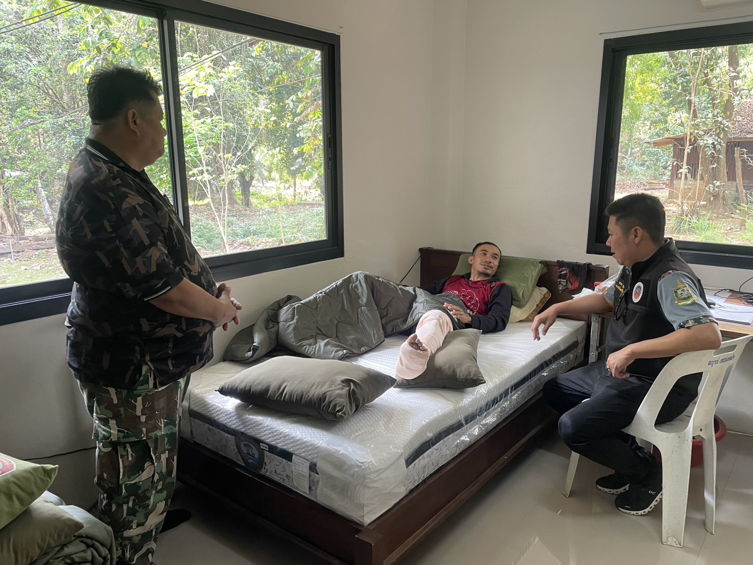 โดยนายนพดล อยู่นุช พนักงานจ้างเหมา (TOR)ประสบอุบัติเหตุขณะนำกำลังเข้าปิดล้อมจับกุมกลุ่มผู้ลักลอบตัดไม้บริเวณ “ป่าห้วยขนุน” ซึ่งเป็นพื้นที่หุบเขาลาดชัน โดยในระหว่างวิ่งไล่กวดผู้กระทำผิด นายนพดลได้เสียหลักล้มกระแทกโขดหินอย่างรุนแรง เป็นเหตุให้กระดูกขาซ้ายหัก เพื่อนร่วมงานต้องเร่งแบกหามออกจากป่าลึกเพื่อส่งโรงพยาบาลทองผาภูมิ โดยมีกำหนดเข้ารับการผ่าตัดใหญ่ในวันที่ 17 มีนาคม นี้ อีก 1 รายคือนายปรีชา บำรุงเขต หัวหน้าหน่วยพิทักษ์อุทยานฯ ที่ ศร.2 (ดงใหญ่) ซึ่งเป็นกำลังหลักในการบัญชาการดับไฟป่าในพื้นที่รอยต่อสำคัญ ได้ปฏิบัติหน้าที่ต่อเนื่องหลายวันภายใต้สภาพอากาศร้อนจัดและควันไฟสะสม ส่งผลให้ร่างกายอ่อนเพลียรุนแรง มีไข้สูงเฉียบพลัน และขาซ้ายบวมอักเสบ ขณะนี้ถูกนำตัวส่งโรงพยาบาลสมเด็จพระปิยมหาราชรมณียเขต เพื่อเจาะเลือดตรวจหาเชื้อและประเมินอาการอย่างใกล้ชิด
