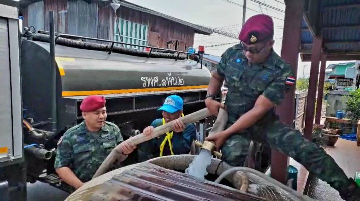 กองพันรบพิเศษที่ 2 กรมรบพิเศษที่ 1 (รพศ.1 พัน.2) ค่ายวชิราลงกรณ์ จัดกำลังพลชุดปฏิบัติการพลเรือน กองพันประจำอำเภอ และกำลังพลจิตอาสาพระราชทาน จำนวน 6 นาย พร้อมด้วยรถยนต์บรรทุกน้ำ ขนาด 6,000 ลิตร ของหน่วย จำนวน 1 คัน ในนามศูนย์บรรเทาสาธารณภัย กองพันรบพิเศษที่ 2 กรมรบพิเศษที่ 1 ร่วมกับ เทศบาลตำบลดีลัง ออกแจกจ่ายให้กับประชาชนที่ได้รับความเดือดร้อน บริเวณพื้นที่หมู่ที่ 2 หมู่ที่ 3 และหมู่ที่ 6 ตำบลดีลัง อำเภอพัฒนานิคม จังหวัดลพบุรี ต่อเนื่องเป็นสัปดาห์ที่ 2 โดยใช้แหล่งน้ำดิบบริเวณอ่างเก็บน้ำเขาน้อย ซึ่งเป็นแหล่งน้ำดิบที่ใช้ในการผลิตระบบประปาผิวดิน ซึ่งปัจจุบัน ปริมาณแหล่งน้ำดิบดังกล่าว ไม่เพียงพอต่อการผลิตประปา เนื่องจากเกิดปัญหาภัยแล้ง ในพื้นที่ฝนตกน้อยกว่าที่คาดการณ์ ทำให้ประชาชนได้รับความเดือดร้อนเป็นอย่างมาก โดยหน่วยได้ให้การสนับสนุนรถยนต์บรรทุกน้ำ จำนวน 12 เที่ยว เที่ยวละ 6,000 ลิตร รวมปริมาณน้ำ 72,000 ลิตร เพื่อทำการแจกจ่ายน้ำอุปโภค บริโภค ให้กับประชาชนที่ประสบปัญหาภัยแล้ง ทำให้ภาชนะกักเก็บน้ำสำรองในแต่ละครัวเรือน รวมถึงถังน้ำกลางในหมู่บ้าน เริ่มแห้งขอด เพื่อแก้ปัญหาภัยแล้งที่เกิดขึ้นในปัจจุบันตามนโยบายของกองทัพบก ในโครงการ “ราษฎร์ รัฐ ร่วมใจช่วยภัยแล้ง” ประจำปี 2569 และได้เข้าประชาสัมพันธ์ให้ประชาชนได้รับทราบ และเข้าใจถึงสถานการณ์น้ำในปัจจุบัน ตลอดจนการใช้น้ำอย่างไรให้ได้ประโยชน์จากน้ำอย่างคุ้มค่า