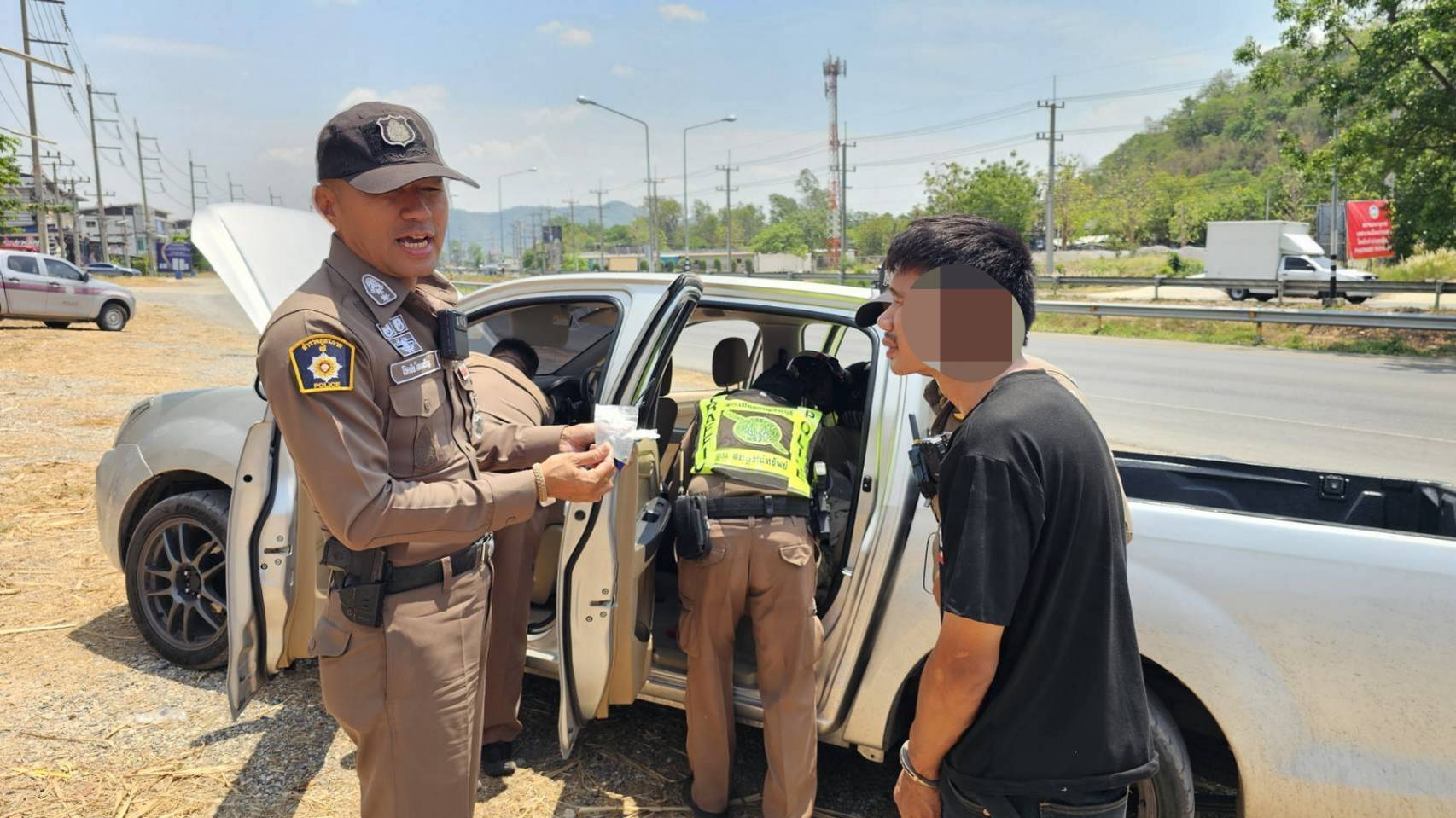 ต่อมาเวลา 12.30 น.พบรถยนต์กระบะยี่ห้ออีซูซุ 4 ประตู สีบอรนซ์เงิน หมายเลขทะเบียน ระยอง ขับมาจากทางด้านแยกแก่งเสี้ยน มุ่งหน้าแยกวังสารภี ซึ่งรถยนต์คันดังกล่าวเป็นรถเป้าหมายที่มีพฤติกรรมเกี่ยวข้องกับยาเสพติด อีกทั้งก่อนถึงด่านตรวจยังมีท่าทางมีพิรุธอีกด้วย เจ้าหน้าที่ตำรวจจราจรจึงเรียกให้คนขับนำรถเข้าข้างทางเพื่อไม่ให้กีดขวางการจราจรของผู้ที่สัญจรไปมา พร้อมเชิญตัวคนขับลงมาเพื่อขอตรวจค้นหาสิ่งผิดกฎหมาย