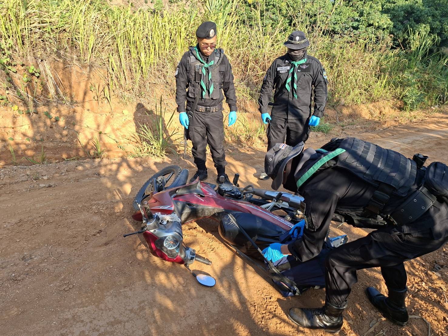 ต่อมาเมื่อถึงเวลา 07.30 น.วันเดียวกัน เจ้าหน้าที่ได้ตรวจพบมีบุคคลขับขี่รถจักรยานยนต์ตำนวน 1 คัน มุ่งหน้าไปทาง ต.แม่ยาว ลักษณะท่าทางมีพิรุธ ก่อนจะถึงจุดตรวจเจ้าหน้าที่จึงได้เรียกหยุดเพื่อตรวจสอบ แต่บุคคลดังกล่าวกลับทิ้งรถจักรยานยนต์และอาศัยความชำนาญในพื้นที่หลบหนีไปได้