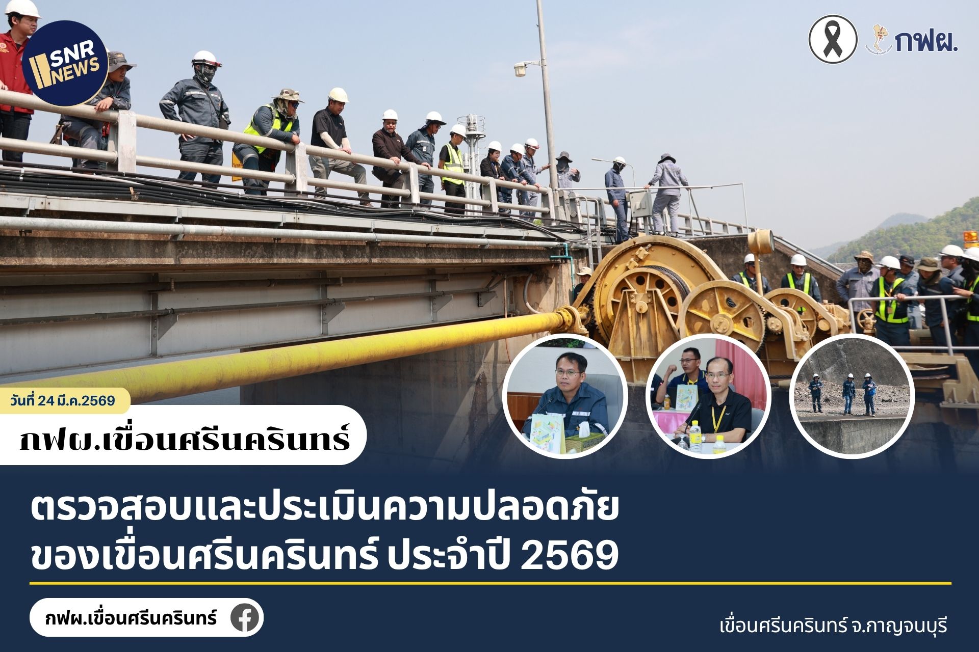 วันที่ 24 มีนาคม 2569 ผู้สื่อข่าวรายงานว่า การไฟฟ้าฝ่ายผลิตแห่งประเทศไทย (กฟผ.) นำโดย นายกำฤทธิ์ ใบแย้ม ผู้อำนวยการฝ่ายบำรุงรักษาโยธา ประธานกรรมการ นายสฤษฎิ์ชัย ผ่องใสโสภณ ผู้อำนวยการเขื่อนศรีนครินทร์ รองประธานกรรมการ พร้อมผู้ปฏิบัติงาน กฟผ. และคณะกรรมการตรวจสอบและประเมินความปลอดภัยของเขื่อน ประจำปี 2569 ร่วมกันตรวจสอบและประเมินความปลอดภัยของเขื่อนศรีนครินทร์