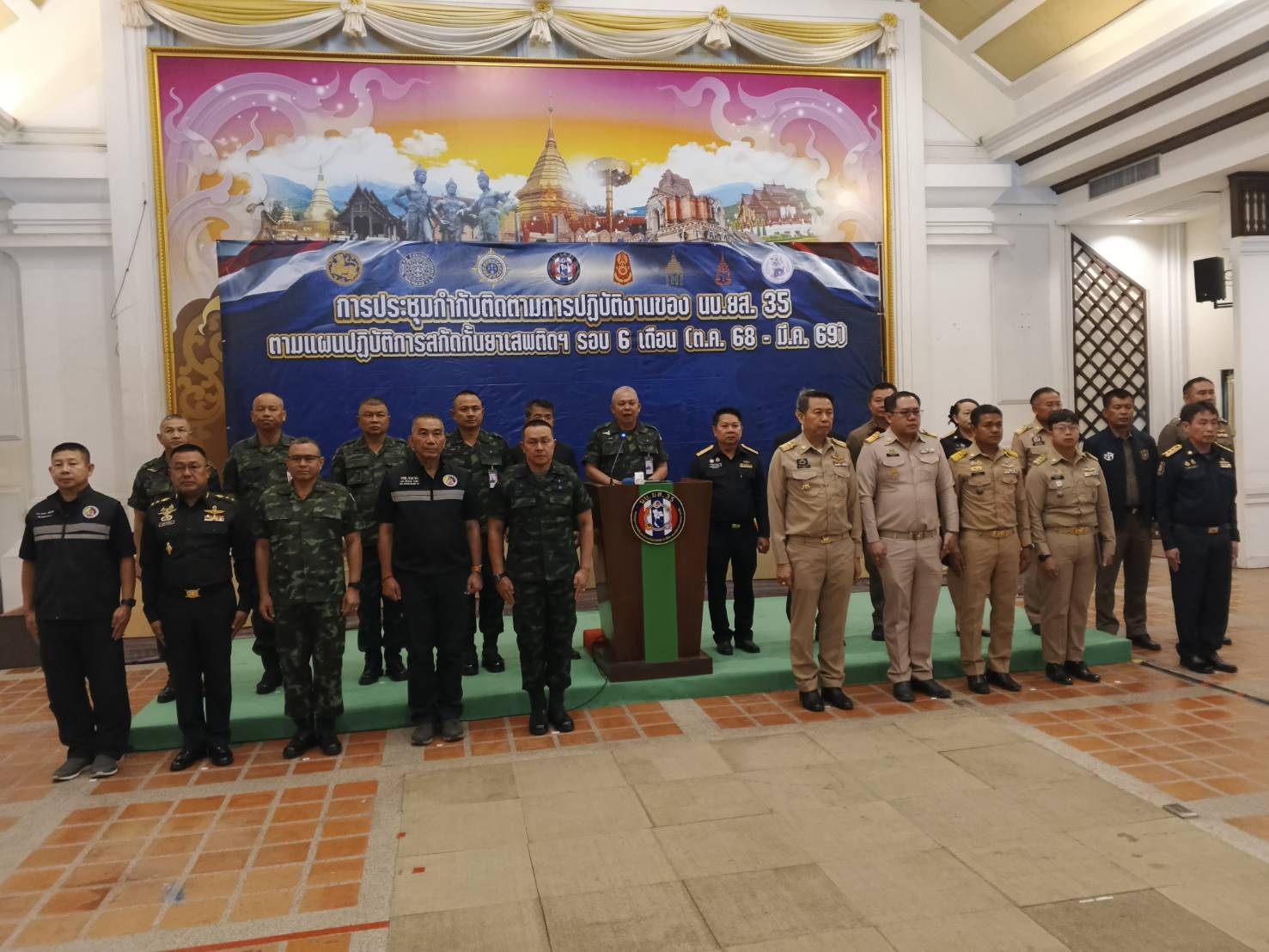 วันที่ 25 มีนาคม 2569 ที่หอประชุมเฉลิมพระเกียรติ 80 พรรษา อบจ.เชียงใหม่ พล.ท.วรเทพ บุญญะ แม่ทัพภาคที่ 3 ในฐานะ ผบ.นบ.ยส.35 พร้อมตำรวจ ปปส.ภ.5 และฝ่ายปกครอง ร่วมประชุมและแถลงข่าวผลการดำเนินงานตามแผนปฏิบัติการสกัดกั้นยาเสพติดรอบ 6 เดือน (ต.ค.68 – มี.ค.69)