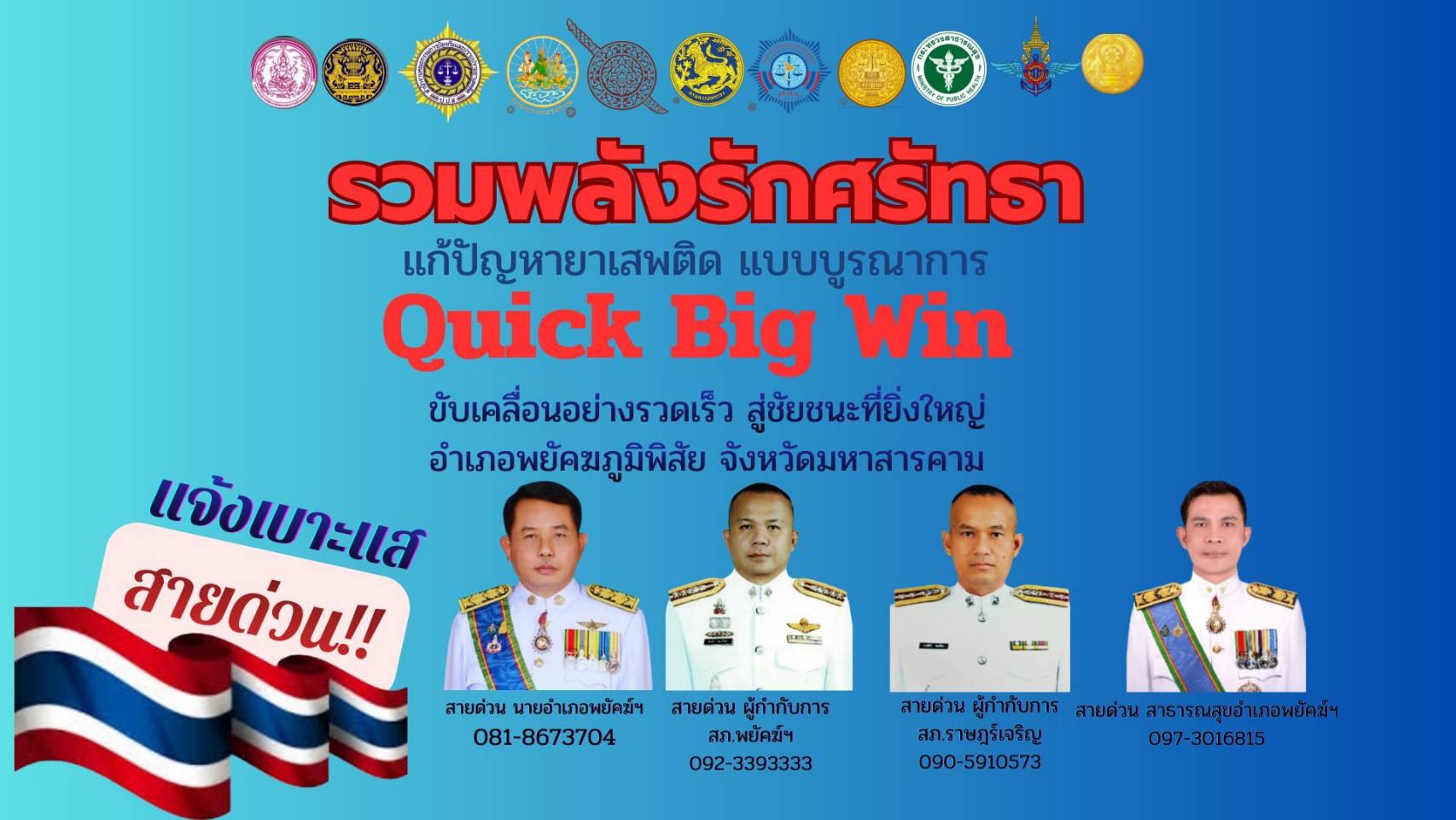 สั่งการให้ดร.พญ.สาธิตา ภัทรบุณย์พงศ์ ผู้อำนวยการโรงพยาบาลพยัคฆภูมิพิสัย นายยุทธศาสตร์ แก้ววิเศษ สาธารณสุขอำเภอพยัคฆภูมิพิสัย นายภานุ อัครบาลง ผอ.โรงพยาบาลส่งเสริมสุขภาพตำบลบ้านเมืองเตา นางจิตติมา ยาวไธสง ผอ.โรงพยาบาลส่งเสริมสุขภาพตำบลบ้านโนนจาน