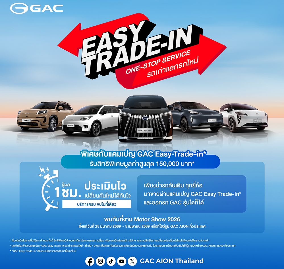 GAC Easy Trade-in: แคมเปญรถเก่าแลกรถใหม่ รับส่วนลดพิเศษสูงสุด 150,000*