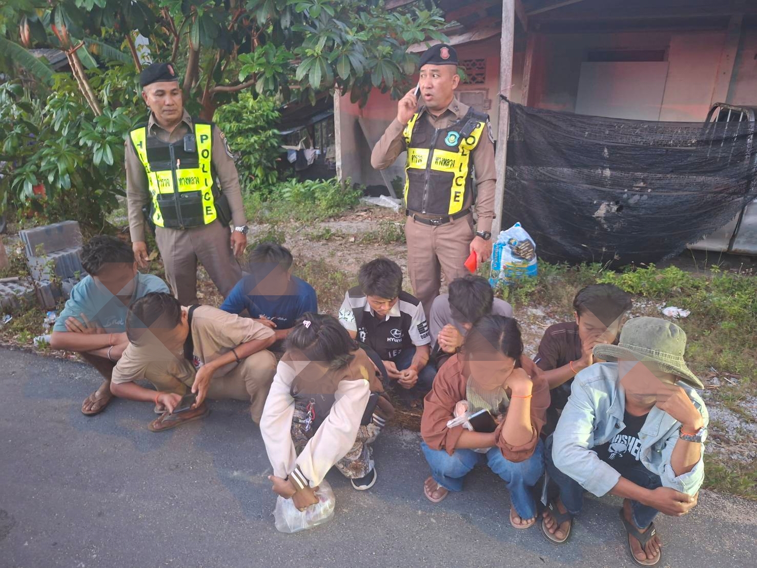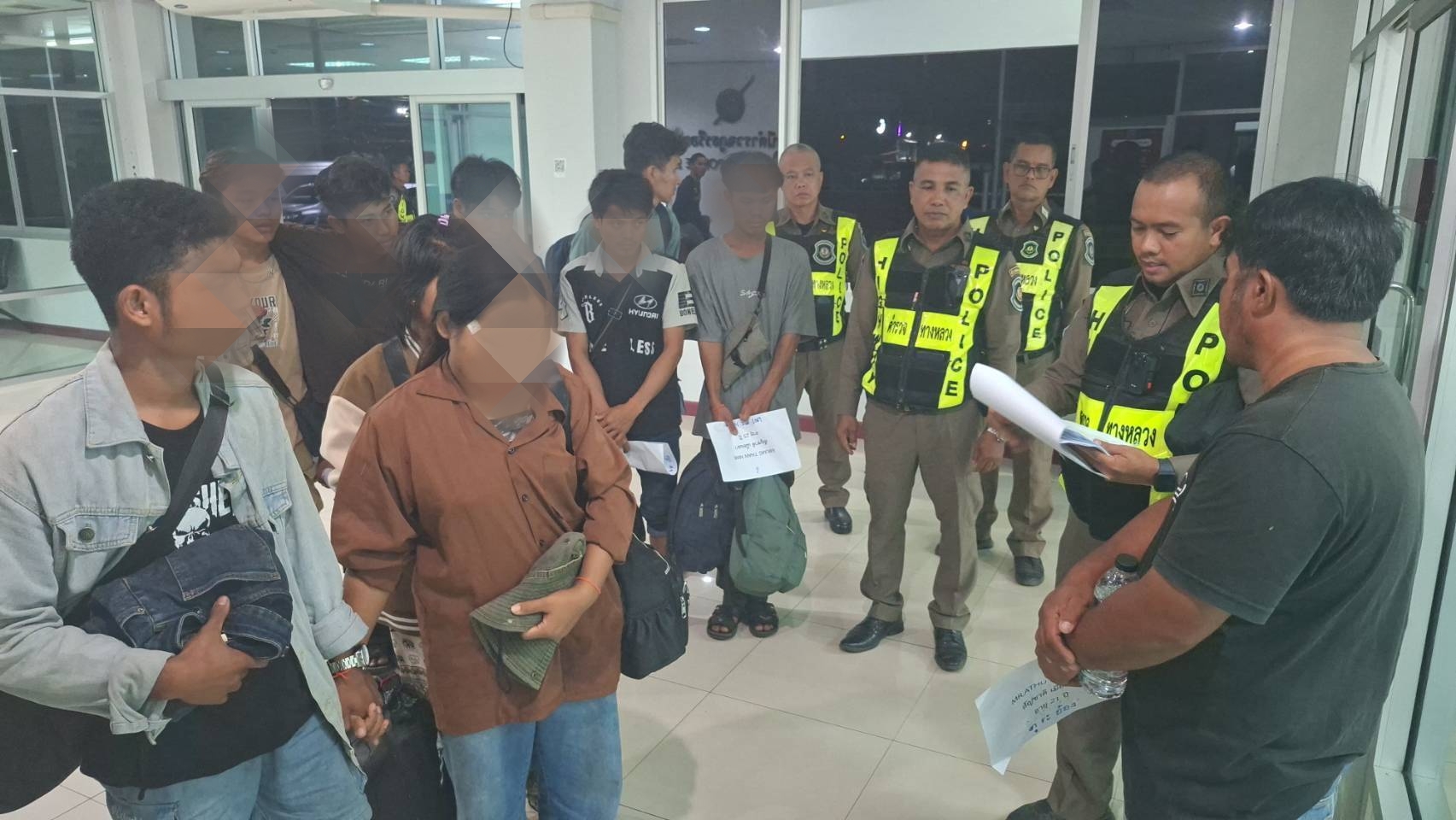 จากการตรวจสอบเอกสารเบื้องต้น พบว่าทั้งหมดไม่มีเอกสารการเข้าเมืองหรือการอนุญาตให้อยู่ในราชอาณาจักรอย่างถูกต้อง เจ้าหน้าที่จึงได้แจ้งข้อกล่าวหา “เป็นคนต่างด้าวอยู่ในราชอาณาจักรโดยไม่ได้รับอนุญาต” พร้อมแจ้งสิทธิตามกฎหมายให้ทราบ
