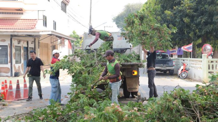 เทศบาลเมืองน่านลงพื้นที่ตัดแต่งกิ่งไม้ เตรียมรับพายุฤดูร้อน ลดเสี่ยงอันตรายประชาชน