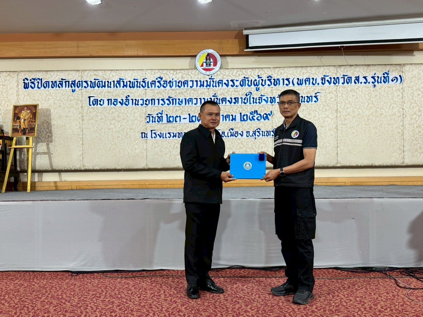 วันที่ 27 มีนาคม 2569 พลตรี กิตติพงษ์ พุทธิมณี รองผู้อำนวยการรักษาความมั่นคงภายใน ภาค 2 เป็นประธานในพิธีปิด“การอบรมหลักสูตรพัฒนาสัมพันธ์เครือข่ายความมั่นคงระดับผู้บริหาร ของ กองอำนวยการรักษาความมั่นคงภายในจังหวัดสุรินทร์ (พคบ.จังหวัด ส.ร.) รุ่นที่ 1 ประจำปี 2569” พร้อมบรรยายพิเศษ ในหัวข้อ บทบาทหน้าที่ของกองอำนวยการรักษาความมั่นคงภายใน การอบรมในหลักสูตรนี้ ได้ดำเนินการระหว่างวันที่ 23 มีนาคม ถึงวันที่ 27 มีนาคม 2569 ณ โรงแรมทองธารินทร์ โดยมี พันเอก สุดใจ แพงพรมมา หัวหน้ากลุ่มงานนโยบายแผนและการข่าว กองอำนวยการรักษาความมั่นคงภายในจังหวัดสุรินทร์ ซึ่งวัตถุประสงค์หลักเพื่อพัฒนาสัมพันธ์ สร้างเครือข่ายความมั่นคงระหว่างหน่วยงานภาครัฐ ภาคเอกชน และผู้นำชุมชนในจังหวัดสุรินทร์ ให้มีความเข้าใจในบริบทความมั่นคงยุคใหม่ และบูรณาการความร่วมมือกันอย่างเป็นรูปธรรม
