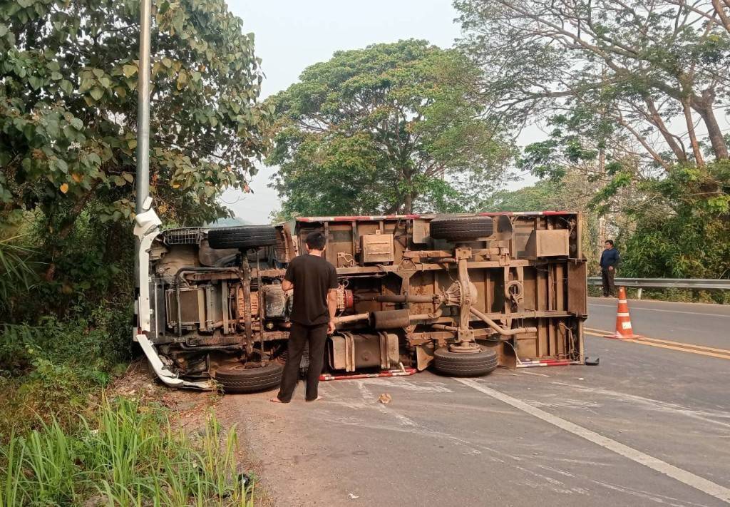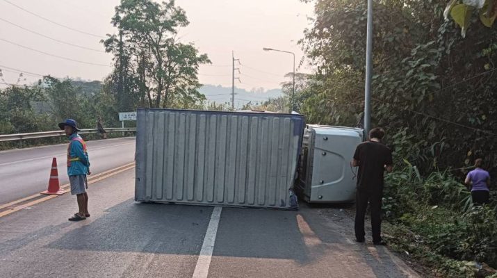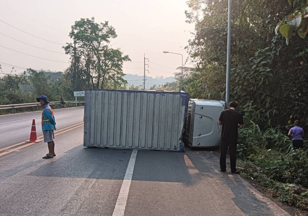 วันที่ 28 มีนาคม 2569 เวลา 08.30 น.ว่าที่ ร.ต.อ.ไตรรัตน์ เต็งไตรรัตน์ พนักงานสอบสวน สภ.เมืองน่าน ได้รับแจ้งจากศูนย์วิทยุนครน่าน 191 ว่า เกิดอุบัติเหตุรถบรรทุกตู้ทึบ 4 ล้อกลางเสียหลักพลิกคว่ำ บริเวณทางโค้งระหว่างบ้านห้วยยื่น ก่อนถึงสะพานหน่วยบริการประชาชนบ้านไร่ไพรวัลย์ ตำบลบ่อ อำเภอเมือง จังหวัดน่าน