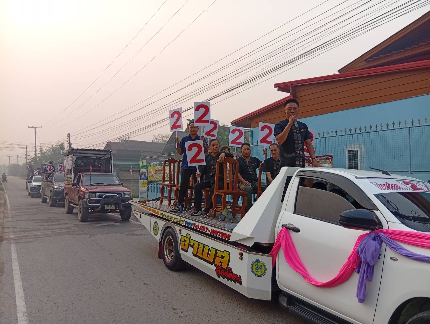 โค้งสุดท้าย ของการหาเสียงเลือกตั้งของนายกและสมาชิกสภาเทศบาลตำบลสะเอียบอำเภอสอง จังหวัดแพร่ ร.ต.อ.ไอยรา ผัดขัน” ผู้สมัครนายกฯ เบอร์ 2