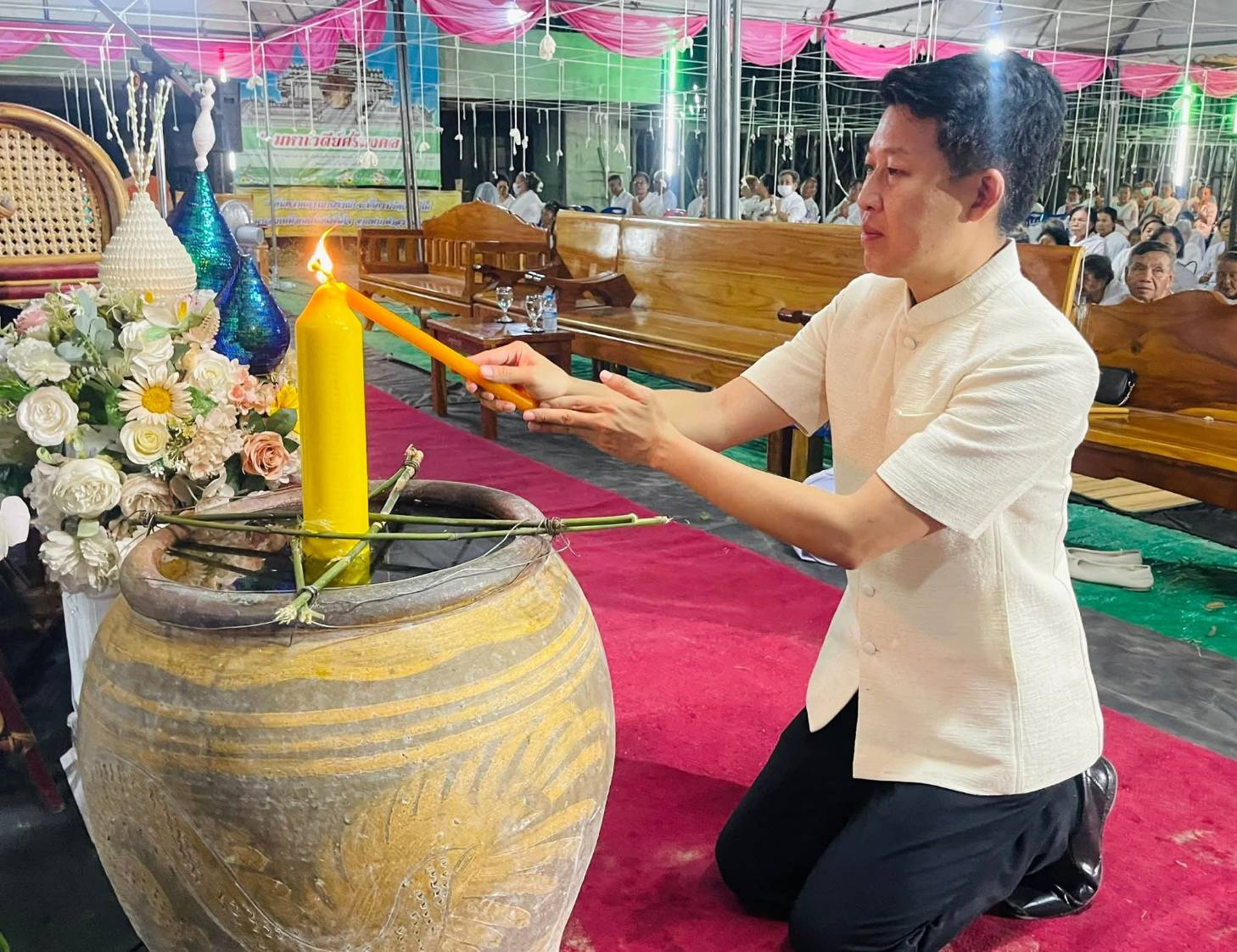 เมื่อเวลา 19.00 น ของวันที่ 29 มีนาคม 2569 ที่วัดอุทัยทิศนายภาคิน ติระพงศ์ไพบูลย์นายกเทศมนตรีเมืองมหาสารคามได้เข้าร่วมเป็นเกียรติในโครงการบรรพชาสามเณรภาคฤดูร้อน และบวชศีลจาริณี ท่ามกลางบรรยากาศแห่งศรัทธาอันสงบงามและเปี่ยมด้วยพลังแห่งบุญกุศล โอกาสนี้ ได้นมัสการท่านเจ้าคุณพระสารคามมุนี ที่ปรึกษาเจ้าคณะภาค 9 เจ้าอาวาสวัดสว่างวารี ประธานสงฆ์ พร้อมอาราธนาคุณพระศรีรัตนตรัยและสิ่งศักดิ์สิทธิ์ทั้งหลาย โปรดประทานพรให้คณะผู้บรรพชาและผู้ปฏิบัติธรรมทุกท่าน เจริญด้วยศีล สมาธิ ปัญญา เป็นกำลังสำคัญของพระพุทธศาสนาสืบไป ซึ่งมีผู้เข้าร่วมบรรพชาสามเณร จำนวน 20 รูป ทั้งนี้มีญาติธรรมเข้าร่วมบวชศีลจารีณี ร่วม150 คน กิจกรรมดังกล่าวเป็นการฝึกตนเองทั้งทาง กาย สังคม จิต ใจ และสติปัญญาให้มีวินัยขยัน อดทน