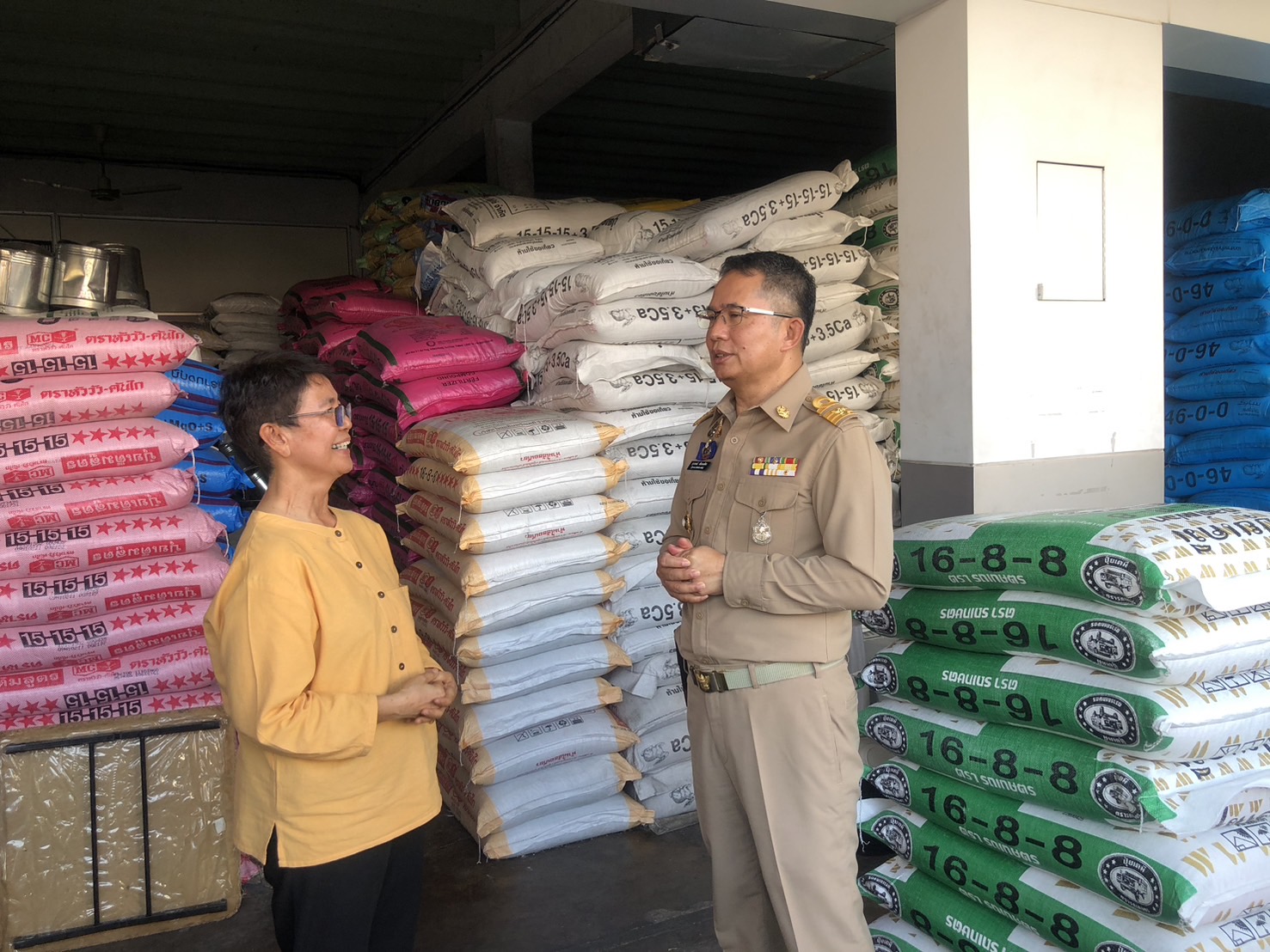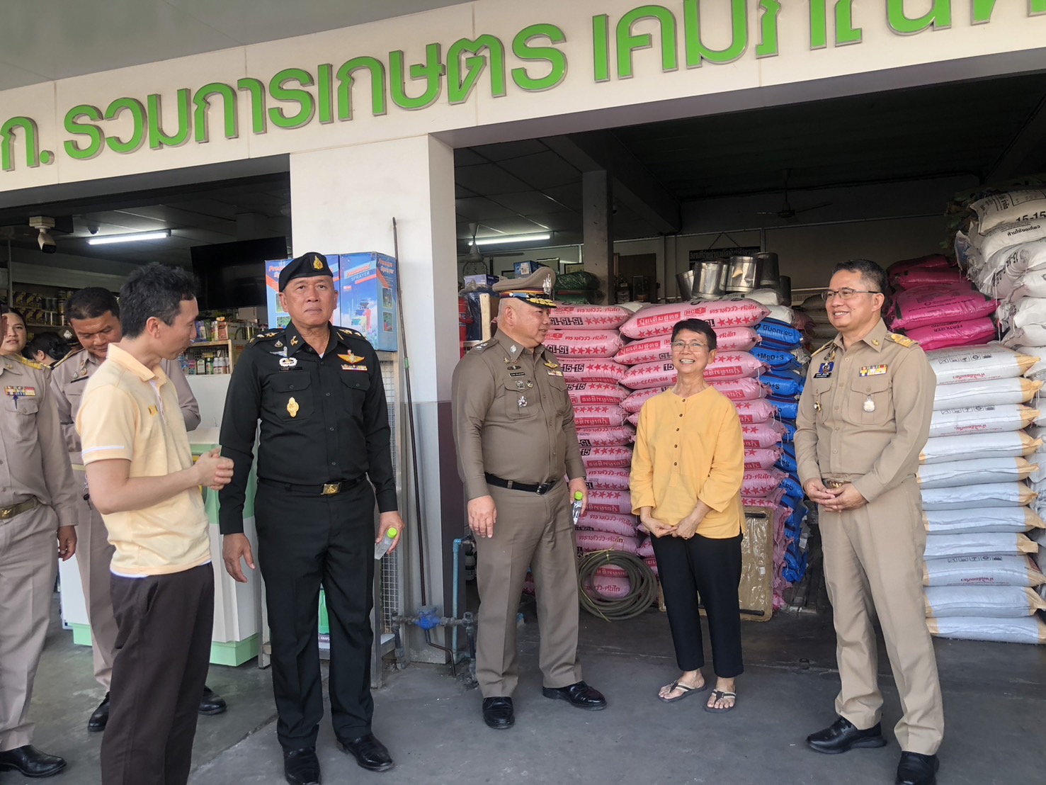 จากนั้นนายสุวรรธณ์ เข็มธนเพ็ชร ผู้ว่าราชการ จ.กาฬสินธุ์ พร้อมคณะได้ลงพื้นที่ตรวจติดตามราคาปุ๋ย และสินค้าวัสดุการเกษตร ที่ร้านรวมเกษตร หน้าตลาดโต้รุ่ง ตำบลกาฬสินธุ์ อำเภอเมืองกาฬสินธุ์ ซึ่งพบว่า ราคาปุ๋ย และวัสดุการเกษตรต่างๆ ยังคงจำหน่ายในราคาปกติ มีเพียงปุ๋ยบางชนิดที่ปรับขึ้นเล็กน้อยตามกลไกลของตลาด ซึ่งทางผู้ประกอบการเองก็ยังคงให้ความร่วมมือกับหน่วยงานราชการตรึงราคาจำหน่ายในราคาเดิม เพื่อช่วยเหลือเกษตรกร พร้อมทั้งติดป้ายแสดงราคาอย่างชัดเจนอีกด้วย