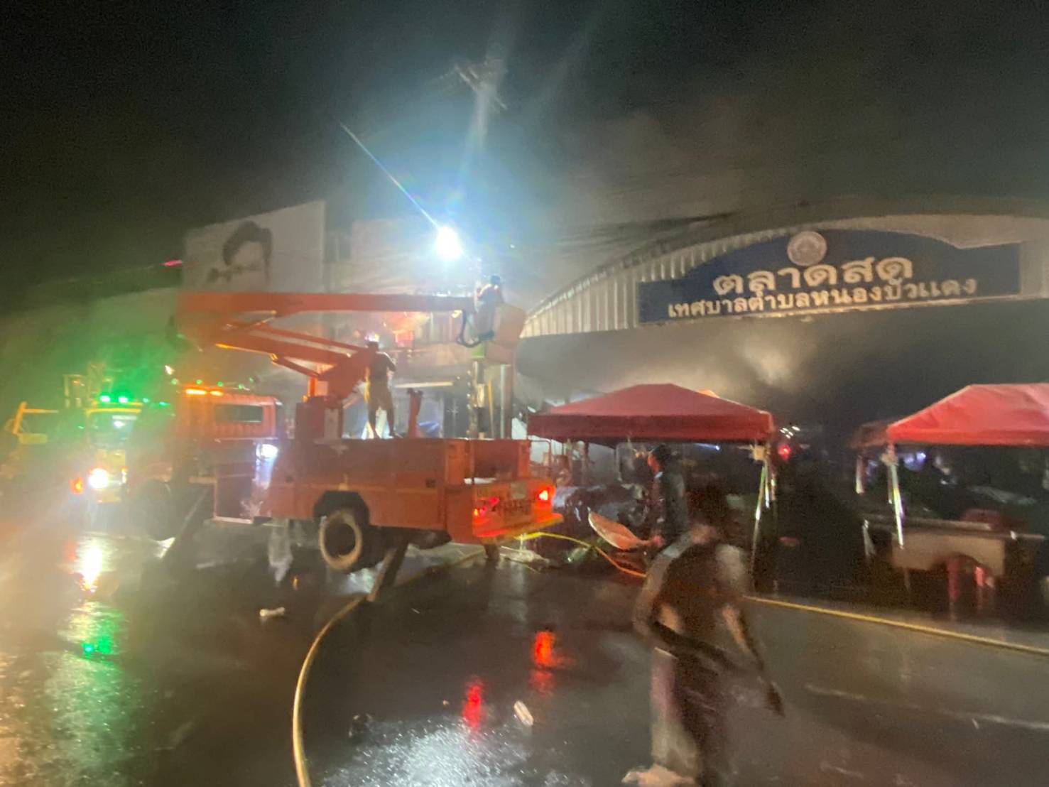 จึงได้มีการประสานรถดับเพลิงของเทศบาลหนองบัวแดงจำนวน 2 คัน เข้าฉีดน้ำดับเพลิงและทำการสแตนด์บายไว้ก่อนเพื่อป้องกันไฟที่อาจปะทุขึ้นมาอีกรอบในครั้งนี้ ทั้งนี้ไฟที่ไหม้ก็ยังสงผลให้เกิดไฟฟ้าดับทั่วทั้งตลาดอีกด้วย
